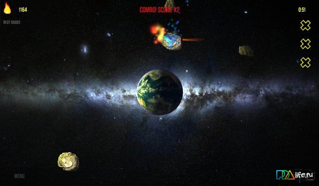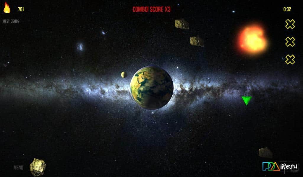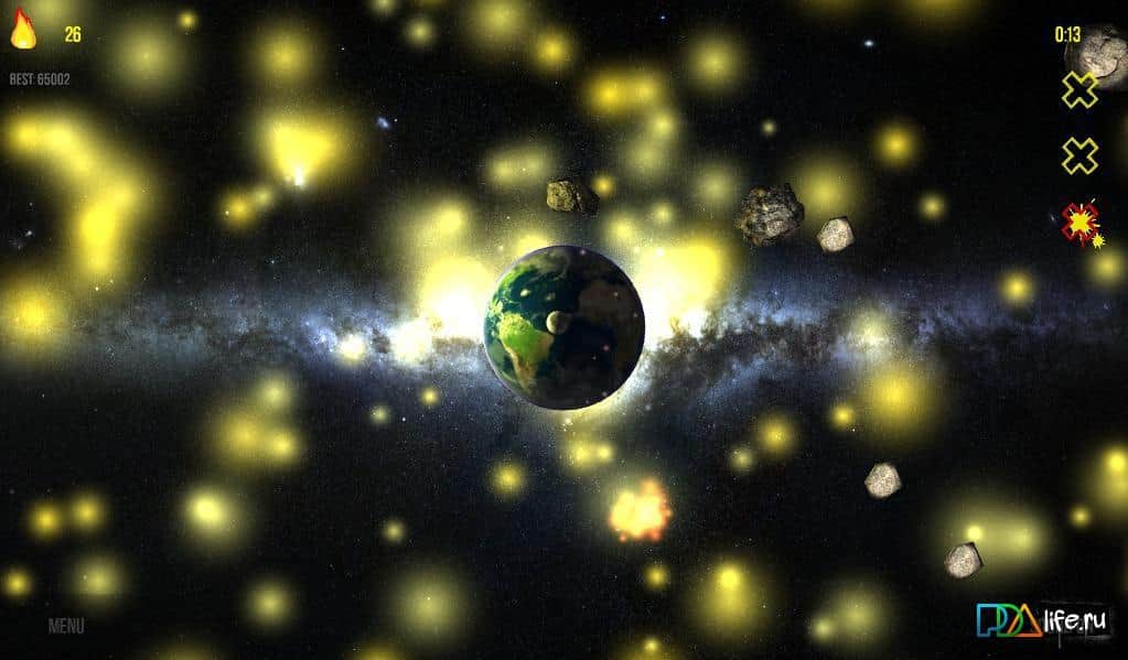 Оборона Земли - новая космическая аркада для андроид. По сюжету - на нашу планету движется огромный метеоритный дождь и что бы мы ни делали, время планеты уже сочтено и разрушение неминуемо. Остается одно- эвакуироваться со всем необходимым для создания жизни на другой планете. Это возможно, но нужно время. Поэтому принимается решение о сдерживании метеоритного дождя для отсрочки разрушения планеты. Ваша задача - разрушать приближающиеся астероиды на безвредные кусочки! Отличный тайм-киллер, требующий от вас максимум концентрации, внимания и точности удара!