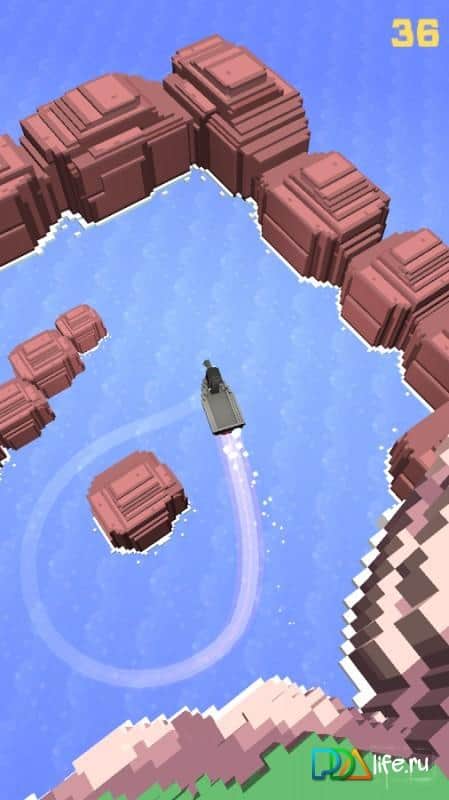 Ocean Drift - Эта игра полностью отображает свое название. Дрифтуйте между скалами, по огромному океану и зарабатывайте очки. Чем лучше вы пройдете уровень, тем больше бонусов получите. За полученные вами награды, вы сможете открыть новые лодки, и вместе с этим другие. более сложные уровни. В игре неплохая пиксельная графика, а так же присутствует элемент разрушения, так что если вы столкнетесь с препятствием ваш кораблик рассыпется, и пойдет ко дну. Но угрозу составляют не только скалы, так же за вами будет гонятся полиция, а ещё морские чудища, которые будут неожиданно появляться и исчезать.