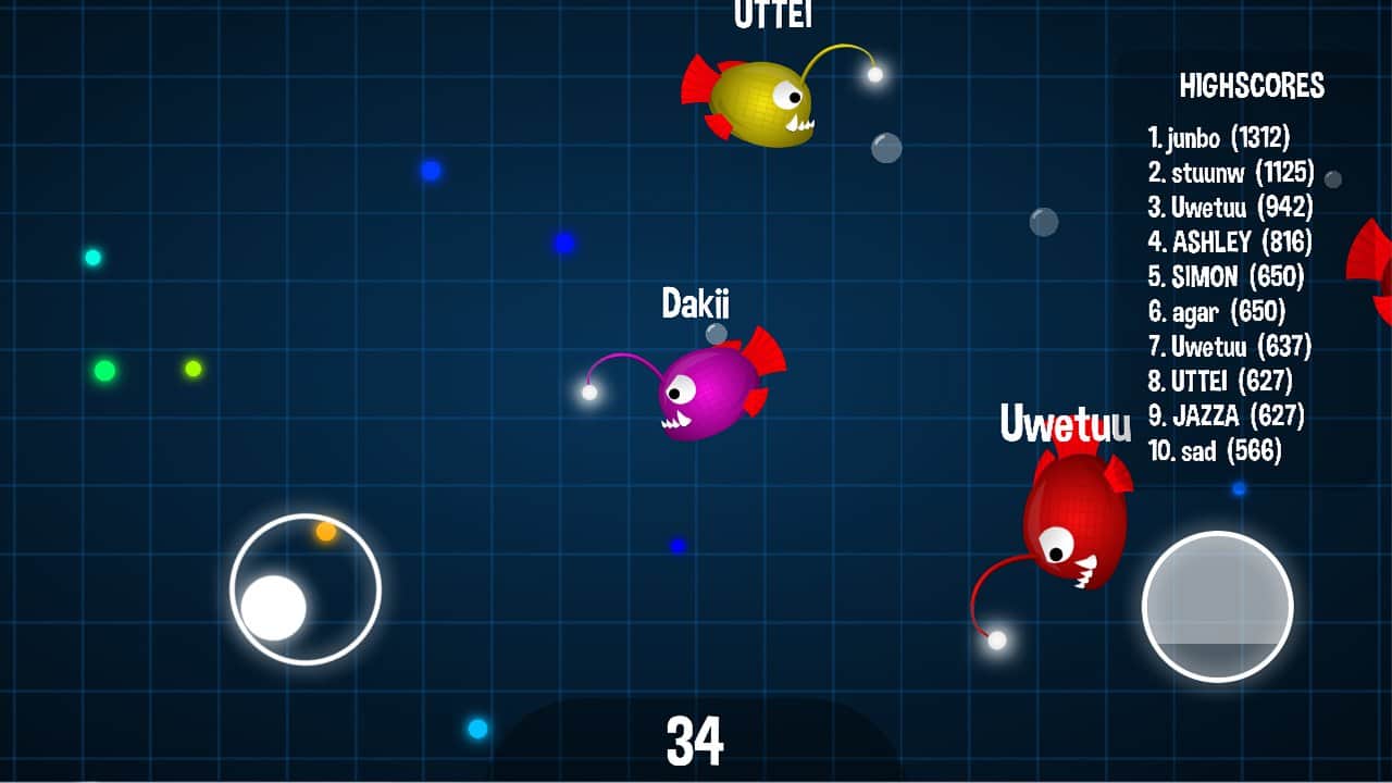 Ocean.io Slap Online – возьмите под свой контроль зубастую рыбку и проведите ее по опасному миру игры. В этой игре вы будете управлять маленькой рыбкой, которая перемещается по дну океана и поедает разноцветные сферы. Вашей главной задачей в этой игре будет поедать рыбок имеющих меньший размер чем у вас и при этом самой увеличиваться в размерах. Начните свое приключение прямо сейчас и постарайтесь продержаться как можно дольше в этой игре, избегая встречи с крупными хищниками. Поедайте рыбок и достигните самых больших размеров в этой игре. Играйте со своими друзьями и другими игроками со всего мира и поднимайтесь все выше в таблице лидеров и достижений.