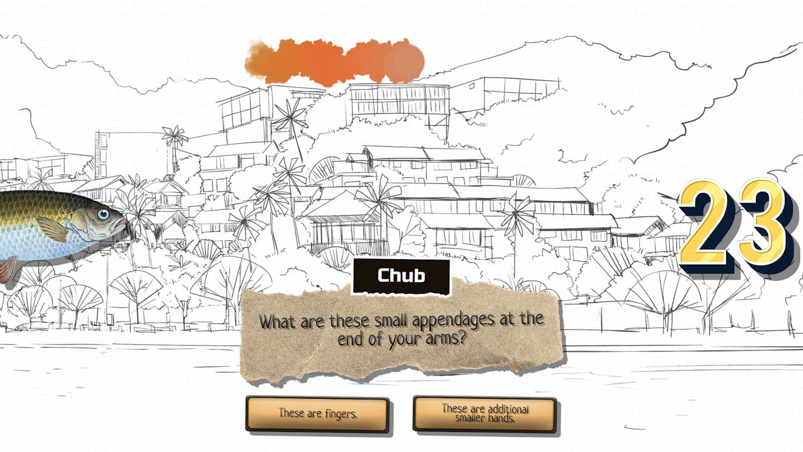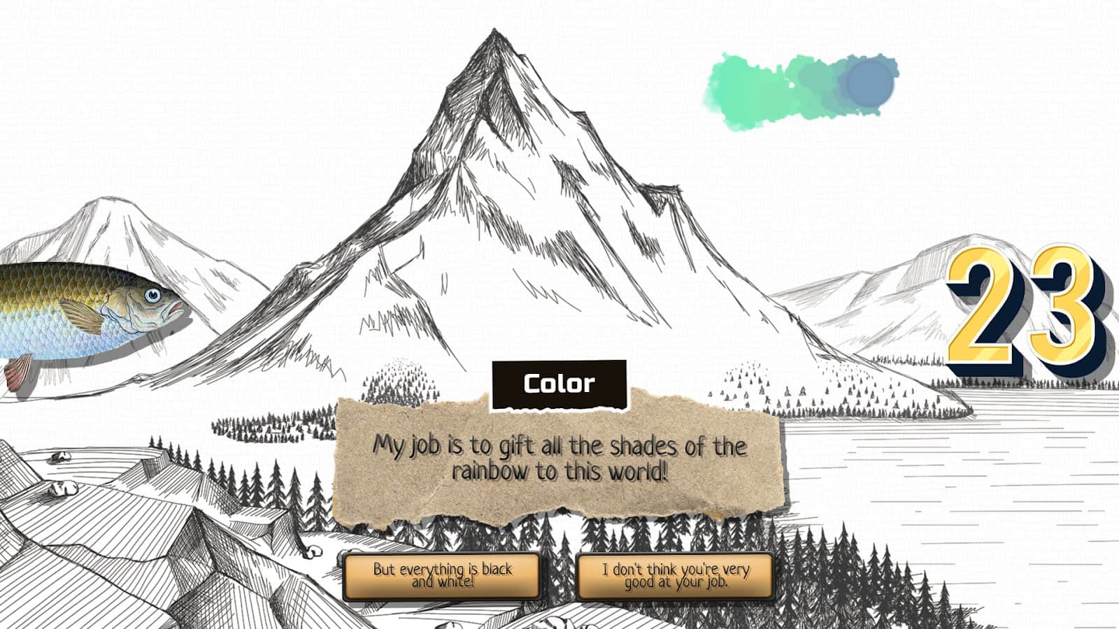 Odd Adventure of Chub, Color - Попадите в полностью нарисованный черно-белый мир, где появляются различные цветные предметы поверх пейзажей! Вы вместе с Голавлемотправитесь проходить запутанную историю, состоящую из настоящих диалогов, головоломок и конечно же неожиданностях в прохождении. Прежде чем играть, узнайте несколько интересных фактов о каждом из персонажей: Голавлю не нравятся рыбные палочки и сухой юмор, Цвету не нравится что-то делать и упоминание вторым в названии, 23 не нравится быть одному и думать о других.