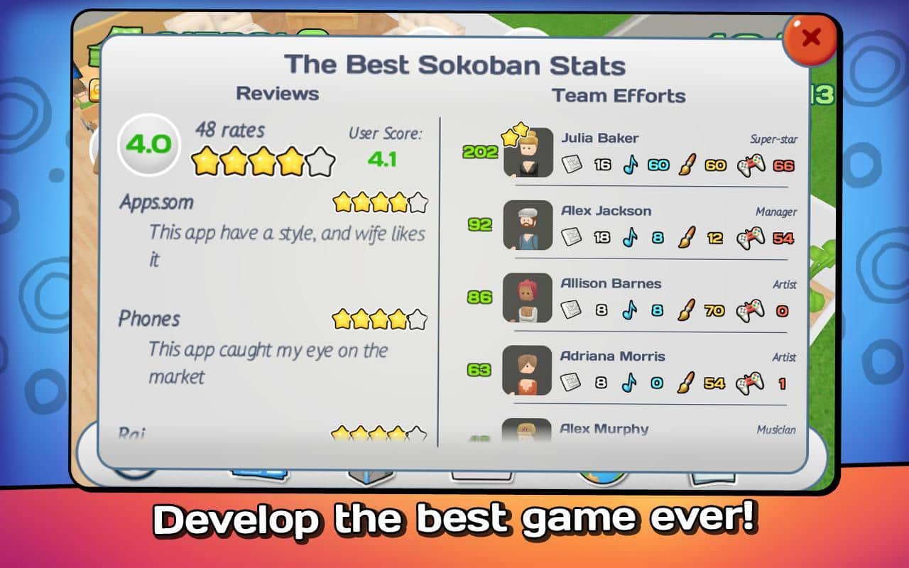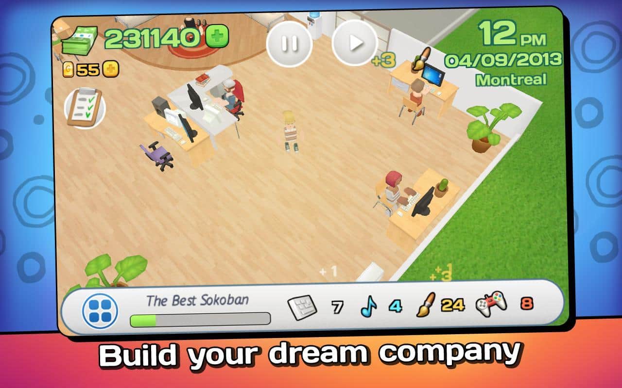 Office Story Premium – игра на андроид, где вы сможете создать компанию своей мечты. В этой игре вы с нуля создадите компанию, которая будет заниматься мобильными разработками и созданием приложений. Изучайте рынок, на который вы хотите выйти и прислушивайтесь к мнению людей и своих сотрудников. Рынок постоянно меняется и те приложения, которые выходят быстро, устаревают и вы должны угнаться за прогрессом и выдержать конкуренцию. Соберите свою неповторимую команду из мотивированных и образованных сотрудников и создайте для них новые оборудованные рабочие места. Путешествуйте по всему миру и нанимайте новых сотрудников. Соревнуйтесь с другими игроками за лучшие места в таблице лидеров и учитывайте такие параметры как качество проекта и доход фирмы.