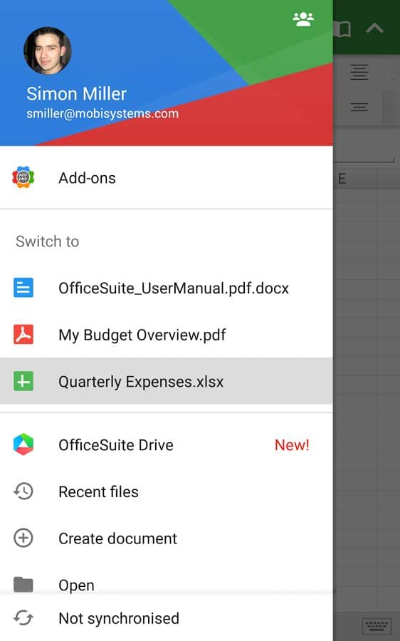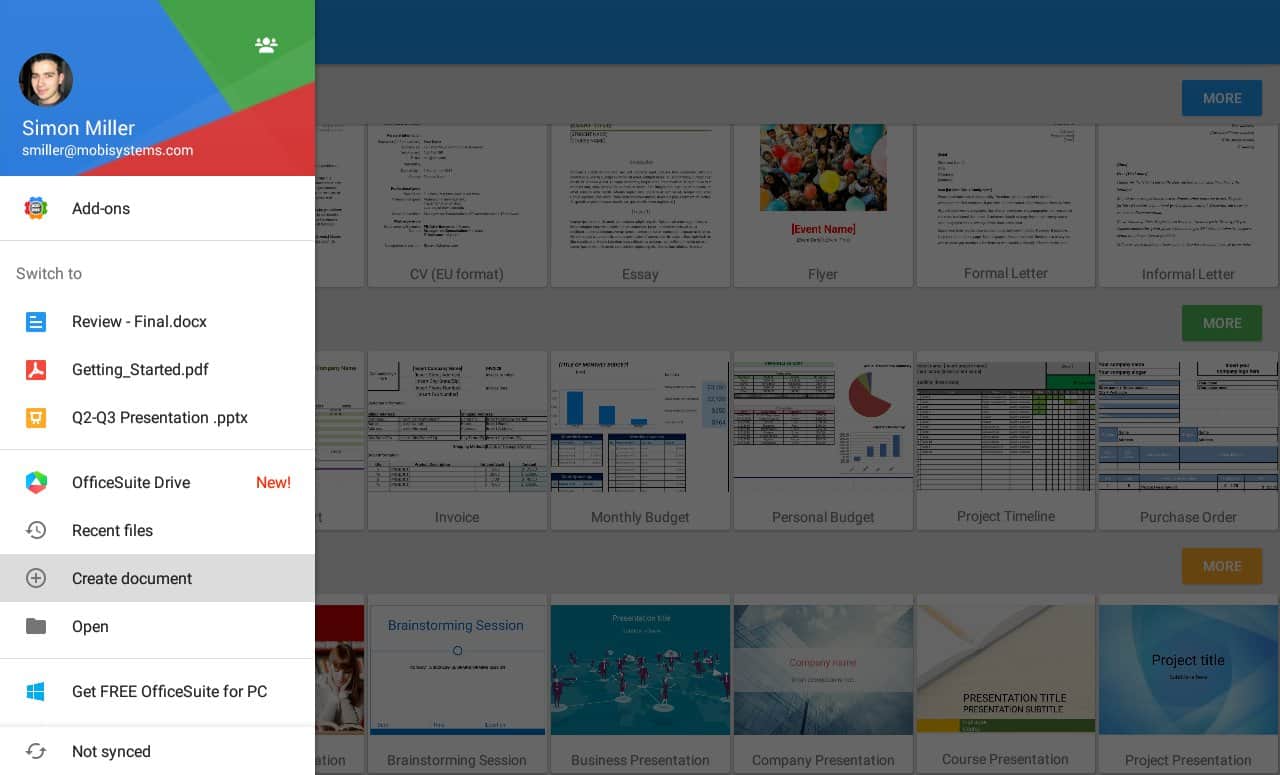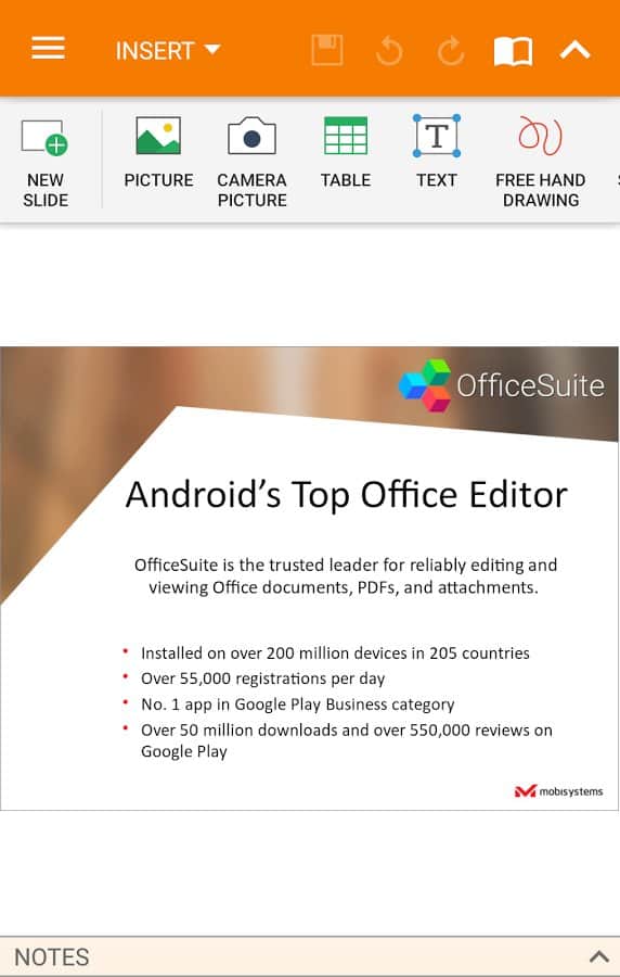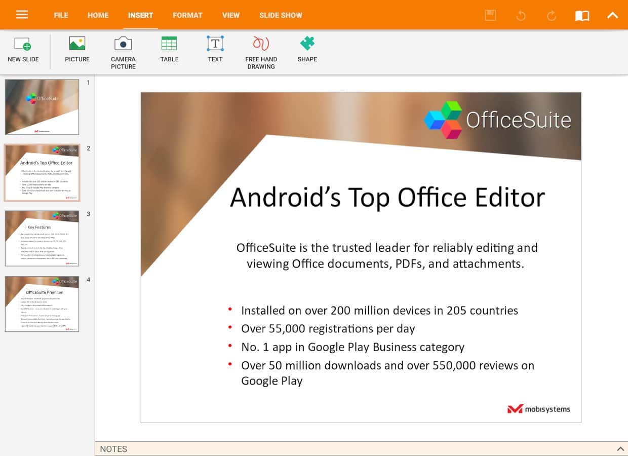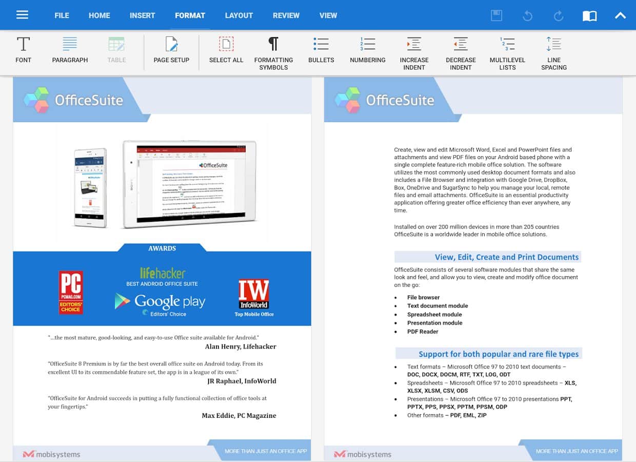 OfficeSuite Pro + PDF - полнофункциональный офисный пакет для android. Данное приложение позволит Вам создавать, редактировать и просматривать файлы в формате MS Word и Excel, а также просматривать документы PDF и презентации PowerPoint. При помощи OfficeSuite Professional Вы сможете просмотреть вложения к письмам в таком же виде, как и на ПК. Или даже создать собственный текстовый документ или электронную таблицу и отправить коллегам по электронной почте.
