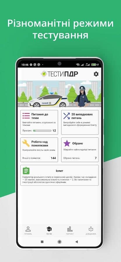 Официальные Тесты ПДД Украины - Выберите необходимую категорию для сдачи прав и выучите все возможные вопросы, чтобы точно пройти экзамены или освежить выученную информацию о ПДД в Украине. В приложении собрано больше 1000 тестов, различных вопросов и головоломок с визуализацией, поэтому вы точно найдете то, что не знаете или не помните. Выберите сами, как именно будет происходить ваше обучение: по билетам или же по конкретным темам на собственный выбор. Даже если вы вдруг ответили не правильно, то в любом случае у вас есть возможность посмотреть сделанные ошибки.