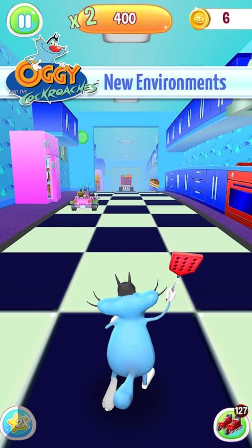 Oggy 3D Run - забавный и динамичный трехмерный ранер с красочной графикой и сюжетной линией. И так, вам предстоит играть в роли милого героя по прозвищу Огги которого то и дело донимают коварные тараканы воруя у него еду. Не смотря на свой добрый нрав на герой не собирается голодать и отправляется в погоню за насекомыми, вам же предстоит помочь ему в этом. Вооружившись всем что попадется под руку необходимо вернуть пропитание при этом еще и собирая монетки и различные бонусы.