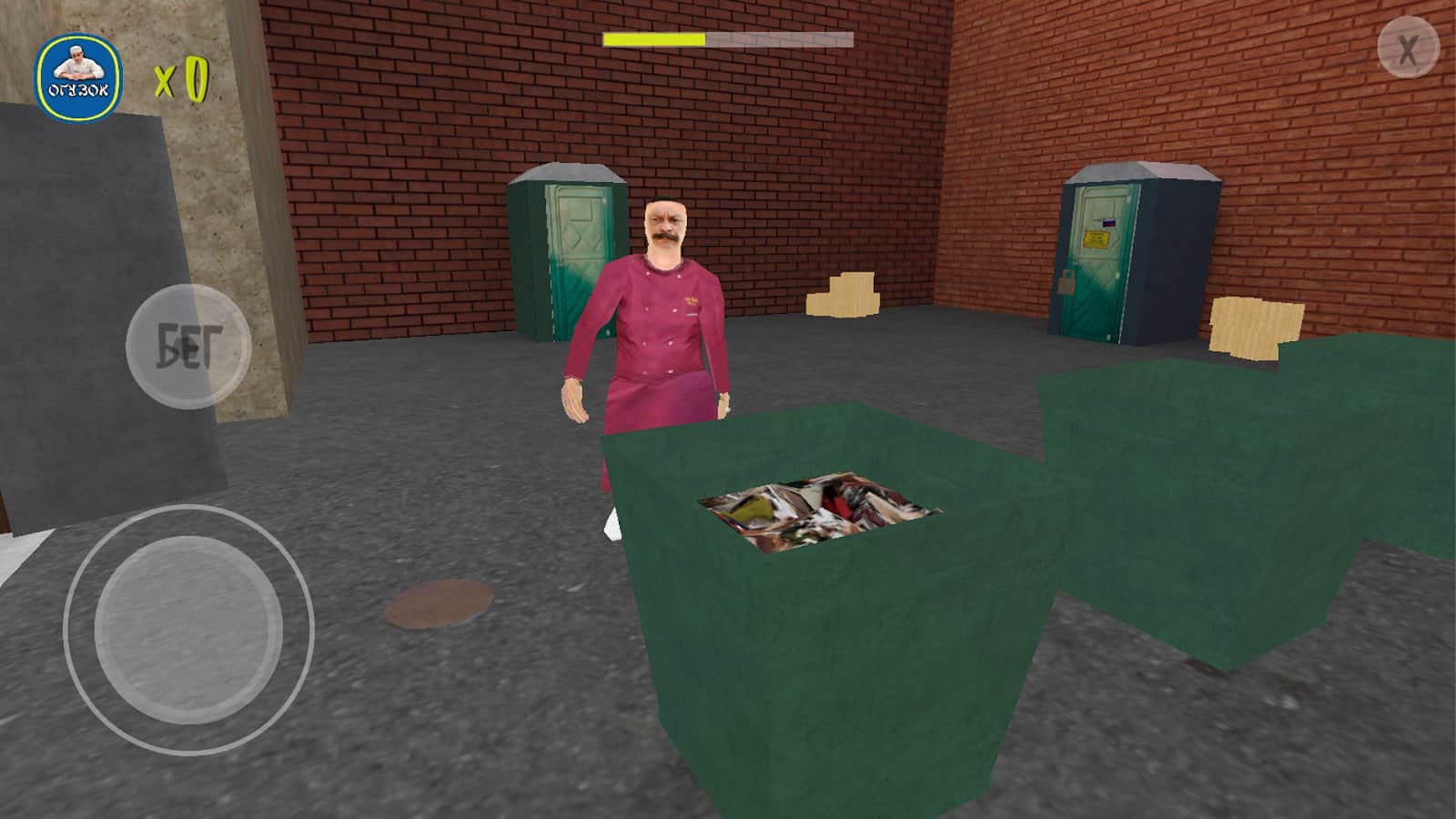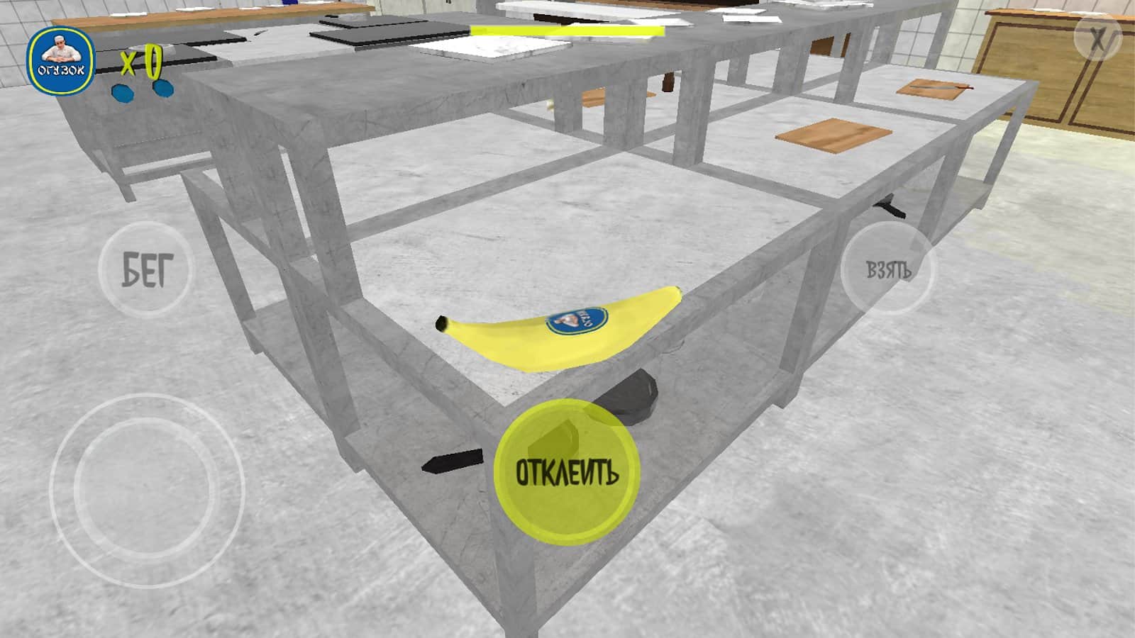 Геймплей. Задача отклеить 10 этикеток от бананов и убежать. И это чисто на одно прозождение и даже так скучно будет. Какой смысл играть в это если в других играх с подобным геймплеем это сделанно лучше (при условии что это тоже треш в который на полном серьезе не поиграть)?