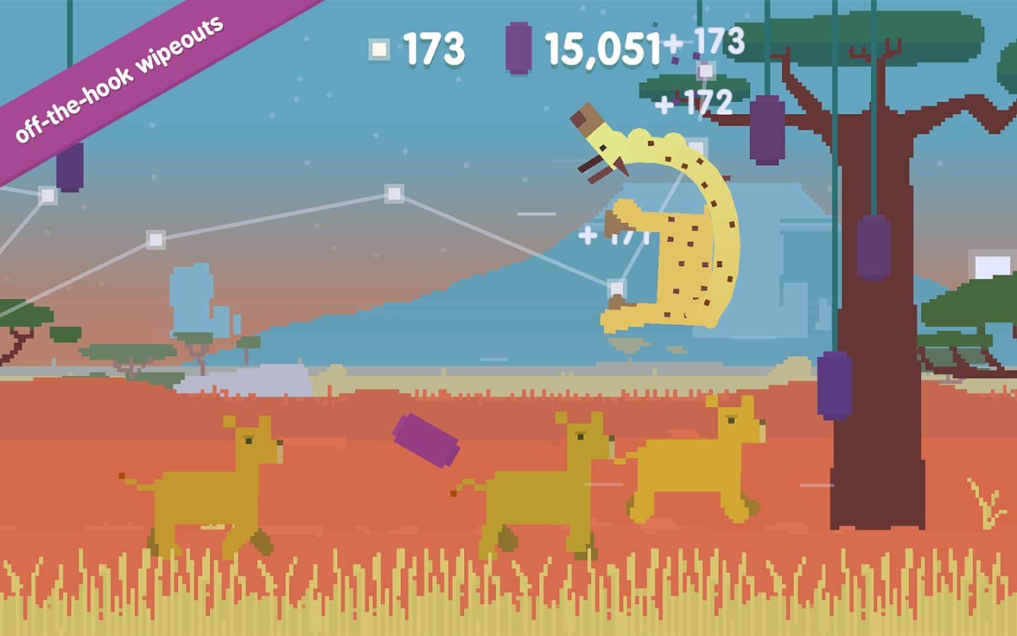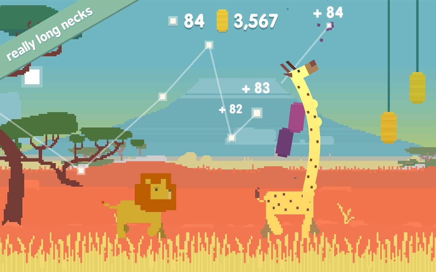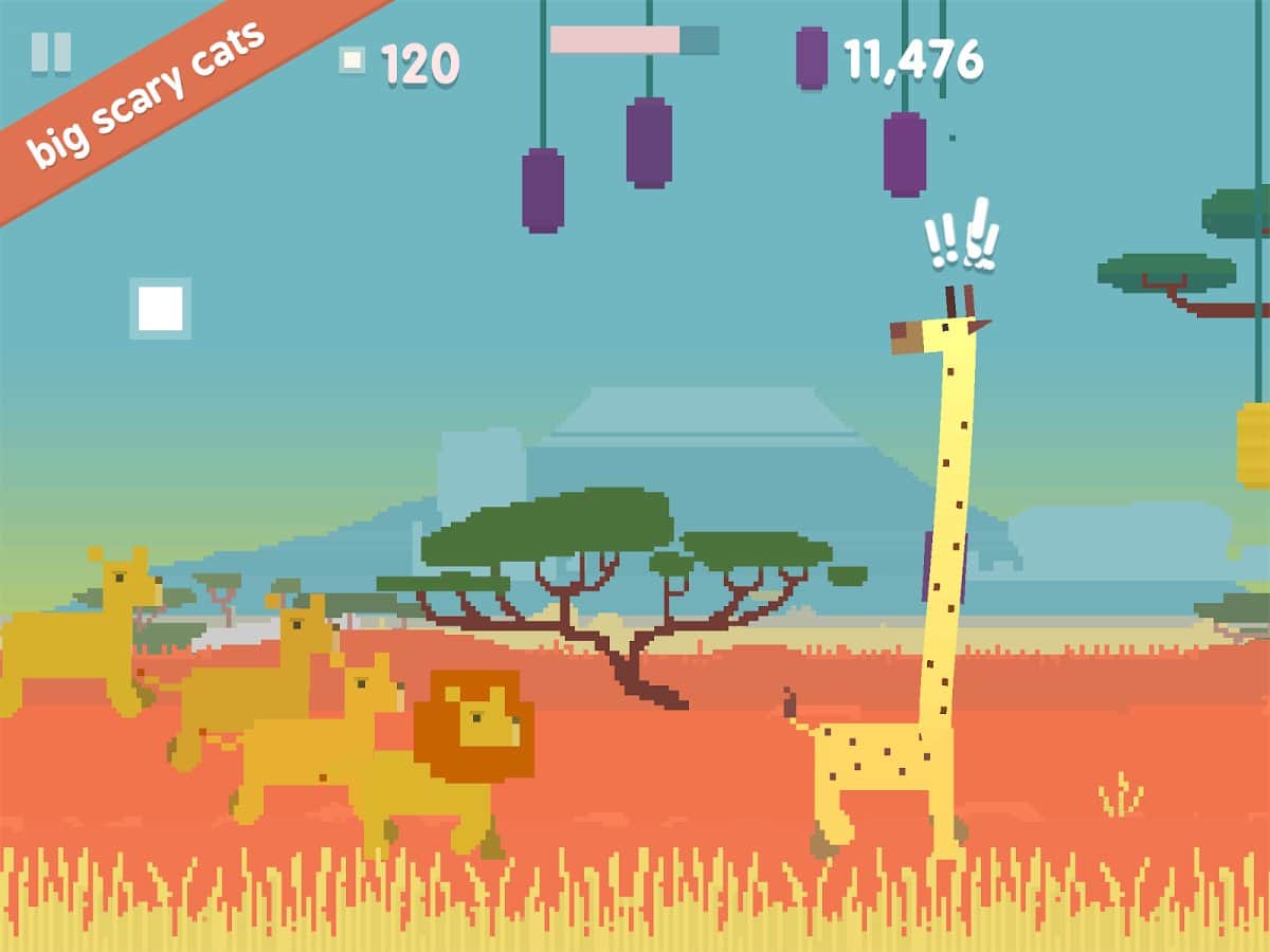 oh my giraffe - веселая игра, где вам предстоит управлять жирафом, за которым гонится стая львов. Управляйте жирафом, а точнее его шеей меняя ее размер в зависимости от того на какой высоте висят фрукты которые необходимо скушать по мере следования. Играйте и получайте удовольствие от захватывающего процесса, но будьте аккуратны не станьте обедом для безжалостных львов, которые так и норовят вас съесть. Играйте в ночное время суток, львы спят по ночам, и вы сможет собрать больше фруктов чем днем.