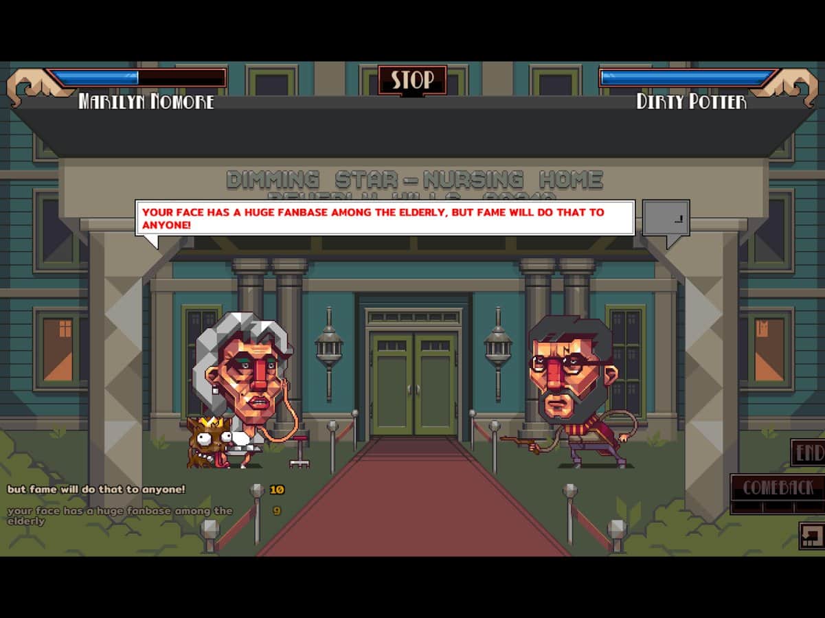 Oh...Sir! The Hollywood Roast - Очень увлекательная игра про колкости и оскорбления своих противников. Суть игры довольно простая, вам дадут на выбор целый набор различных фраз которые оскорбляют вашего противника, и ваша основная задача подстраиваться под текст выбирая нужные ответы. К тому же героями которые сражаются будут звезды голливуда.