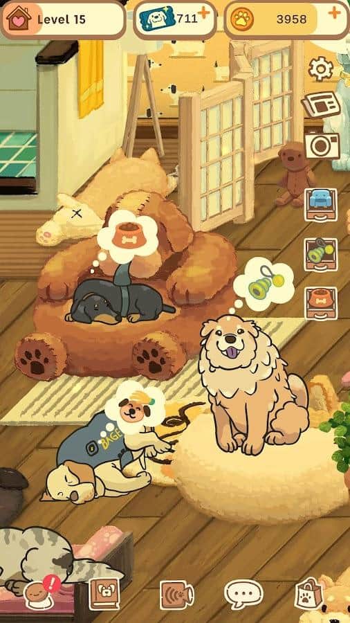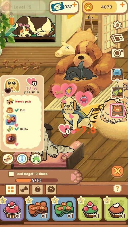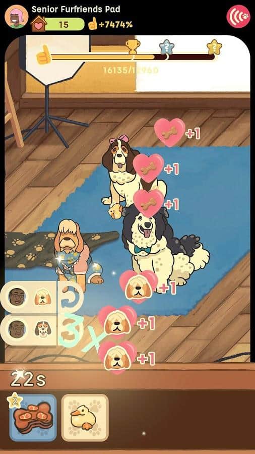 Old Friends Dog Game - Ухаживайте за прелестными старыми собаками: выпекайте вкуснейшие угощения, ухаживайте за ними, гладьте, вместе играйте. По мере роста лояльности каждой собаки для вас открываются новые сюжетные эпизоды с выбором. Таким образом, узнавайте больше о привлекательных характерах четырехлапых. Украшайте внутри и снаружи элегантную мебель и игрушки, которые понравятся вашим жителям, чтобы им становилось еще комфортнее. Нарядите собственных обитателей в их милые наряды! У каждой собаки есть обворожительные украшения, которые вы получаете в качестве заслуги в сюжетных эпизодах.