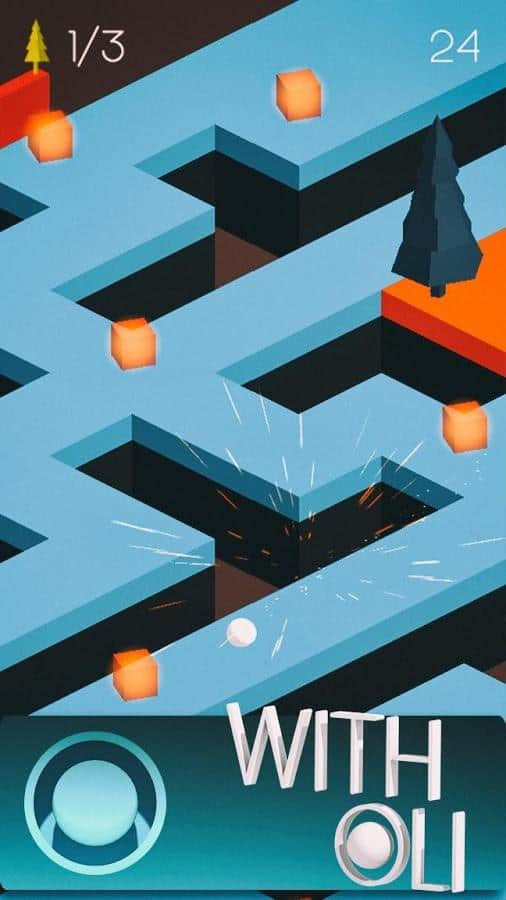 Oliway – управляйте движением белого шарика по многочисленным локациям игры. В этой игре вы на деле проверит свою отличную реакцию и скорость пальцев, вовремя касаясь экрана. Вашей главной задачей в этой игре будет обходить многочисленные преграды у себя на пути, тупики и собирать необходимые бонусы. Проходите представленную вам дистанцию за короткий промежуток времени и соберите достаточное количество бонусов, чтобы перейти на следующий уровень. По пути своего следования вы будете собирать кубики и золотые елочки. Внимательно следите за трассой и вовремя касайтесь экрана телефона, чтобы сменить направление движения шарика.