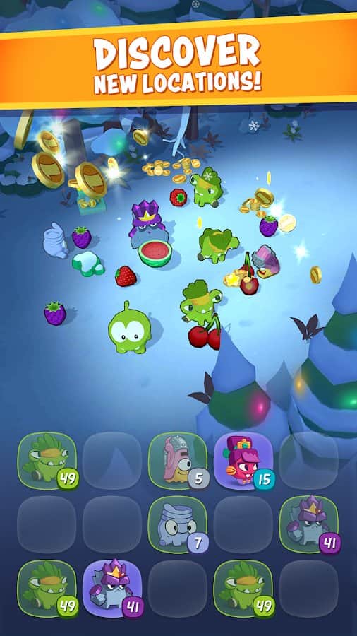 По всему лесу в огромных количествах начали появляться фрукты. Но Ам Ням не может справиться с ними в одиночку - ему срочно требуется ваша помощь, чтоб восстановить равновесие и спасти волшебный лес. Вам предстоит соединять друг с другом магических друзей Ам Няма - номисов, чтобы открыть новых, более сильных номисов, которые будут поглощать лакомства еще быстрее. А пока монстрики поедают фрукты и зарабатывают для вас награды, вы можете отдохнуть с чистой совестью. Открывайте новые локации, соберите множество уникальных персонажей и используйте способности Ам Няма, чтобы быстрее выращивать фрукты и развиваться с удвоенной скоростью.