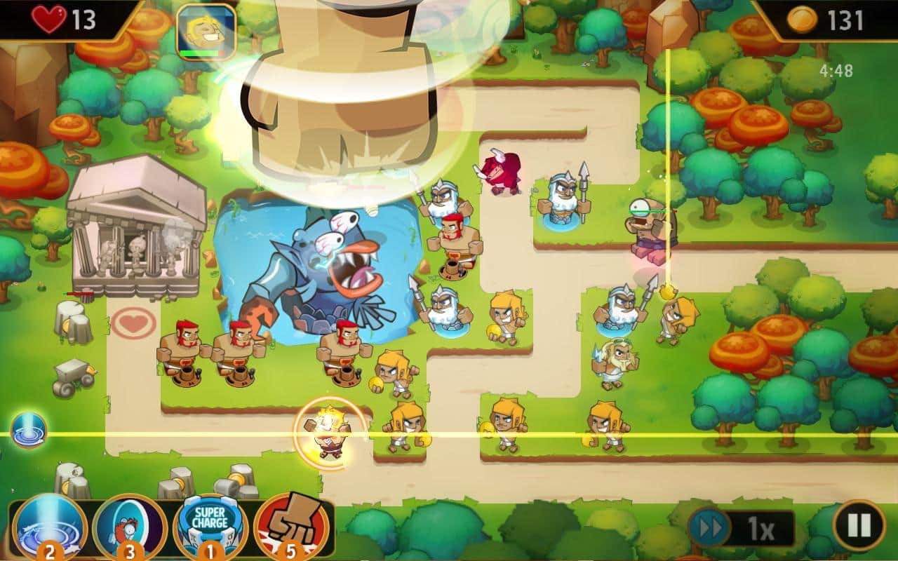 OMG: TD! - игра из жанра tower defense на андроид, в которой вам предстоит управлять армией богов для победы над Титаноми. В этой игре вам предстоит показать все свои умения в стратегии, чтобы правильно расставить могущественных греческих богов, а также ямы-ловушки и взрывающихся овец. Каждый бог обладает своими способностями для борьбы с Титаноми и их туповатыми солдатами. Покажите все свои знания на деле и разработайте непобедимую оборонительную стратегию.