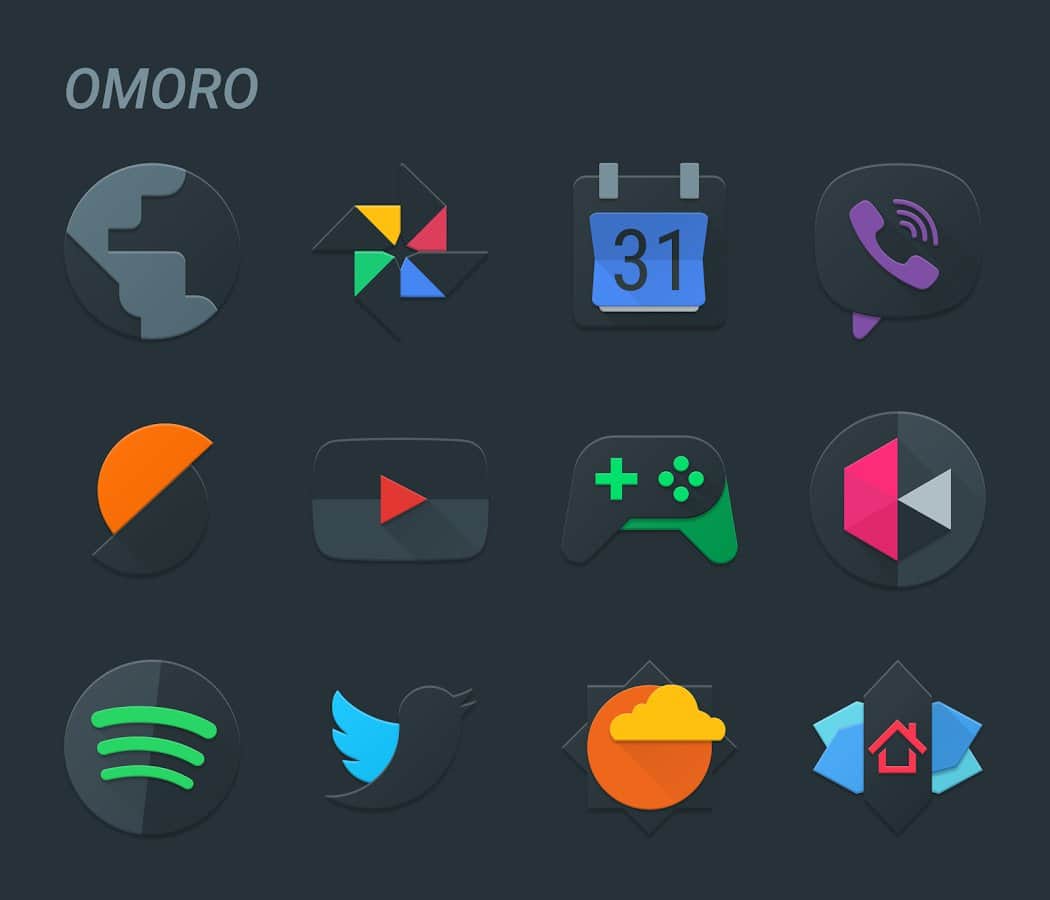 Omoro - Icon Pack - Большой и забавный набор иконок который понравиться огромному количеству пользователей. Здесь вы найдете и мрачные классические иконки на любой вкус. К тому же это приложение поддерживается на большинстве современных лаунчеров, так что у вас не будет проблем с его запуском. А постоянно пополняющийся запас иконок для рабочего стола порадует даже самых требовательных пользователей.