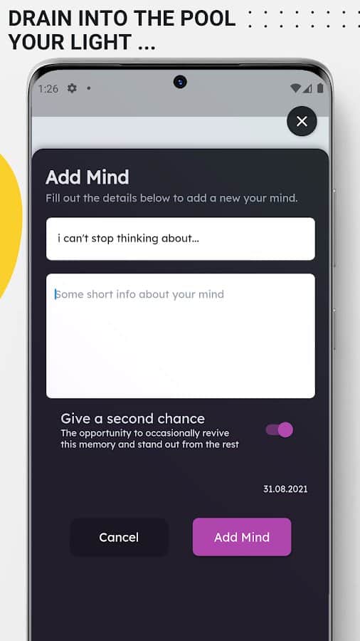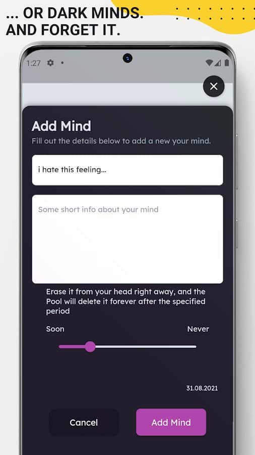 Приложение "Омут" разработана для тех, кто хочет забыть травмирующие психику воспоминания либо тех, которые надоедливо повторяются и становятся навязчивыми. Вы сможете стереть информацию которая негативно влияет на вас. Разделяйте ваши записи на тёмные и светлые, встроенный таймер позволит удалить раз и навсегда самые негативные воспоминания. Самые светлые моменты жизни останутся с вами навсегда и будут выделены приложением отдельно. Во многих случаях лучше записать, нежели забыть позитивную информацию, которая должна долго хранится в вашей памяти. Именно поэтому Омут является актуальной разработкой, полезной для каждого человека.