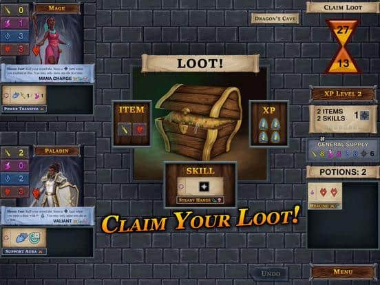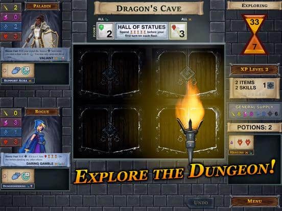 One Deck Dungeon – приключенческая настольная игра для IOS, где вы будете исследовать подземелья. Выбирайте себе одного из пяти представленных в игре персонажей таких как: маг, разбойник, арчер, паладин и другие. Прокачивайте и улучшайте своего персонажа наделяя его уникальными возможностями и умениями, которые позволят ему пройти все испытания и сразиться с врагами. Получайте уникальные карты, которые помогут вам пройти пещеру дракона, пещеру йети, риф гидры, могилу лича и лабиринт минотавра. Игра будет длиться 15 минут за которые вам необходимо проложить себе безопасный путь и потратить как можно меньше времени проходя все испытания.