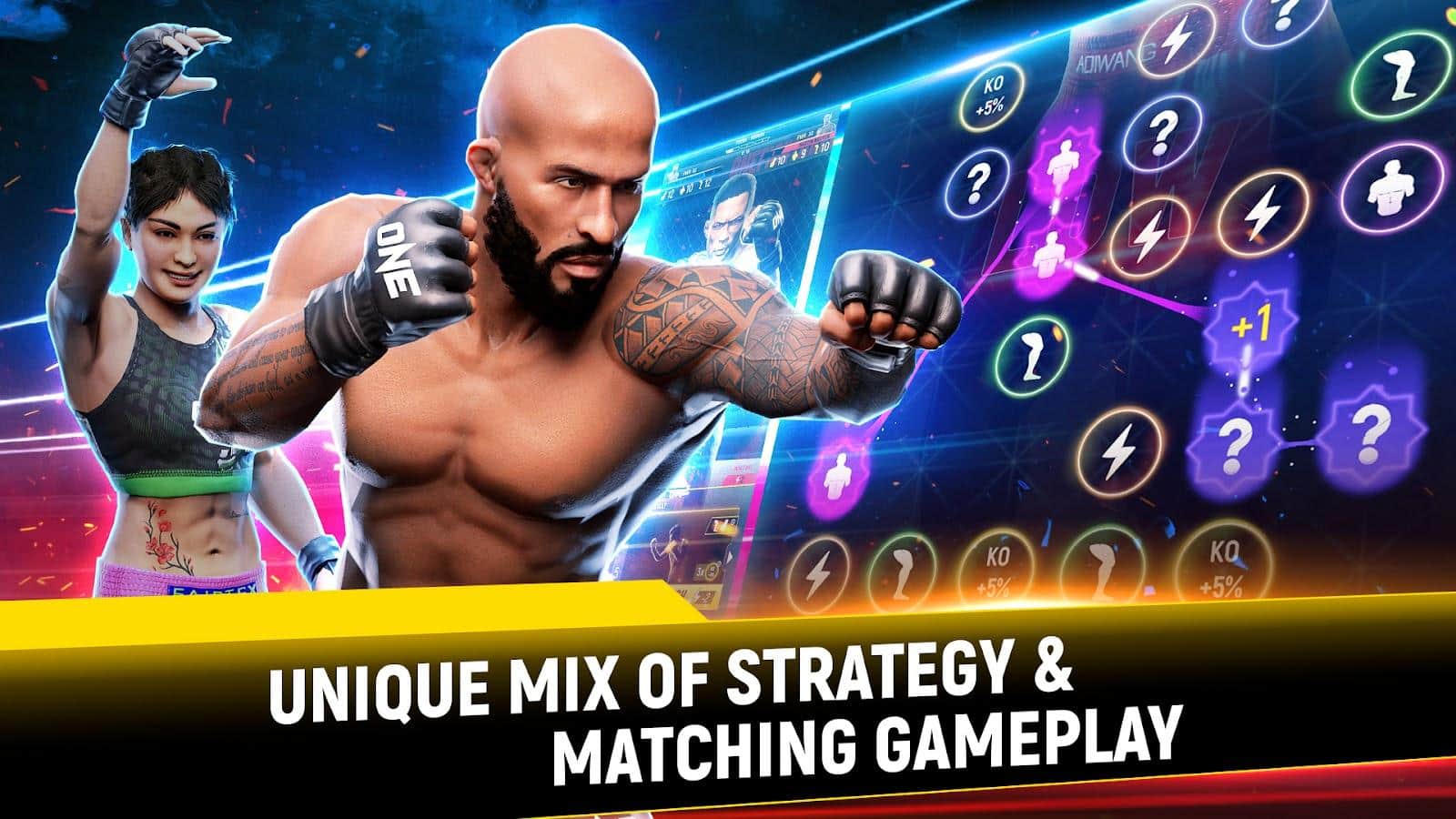 ONE Fight Arena: MMA Tactics - войдите в мир сражений MMA с помощью этой удивительной игры! Вы станете новым бойцом, который должен будет показать свою силу и стратегию с помощью ваших способностей быстро мыслить. Прокачайте своего бойца на максимум и пробейте апперкоты, сделайте броски и удушения. Вообщем, всё, что вы видите, когда смотрите MMA. Но будьте осторожны, ведь враги тоже могут сделать из вас фарш. Так что будьте хитры и осторожны. Победив, вы сможете доказать, что вы действительно достойны быть в мире ММА!