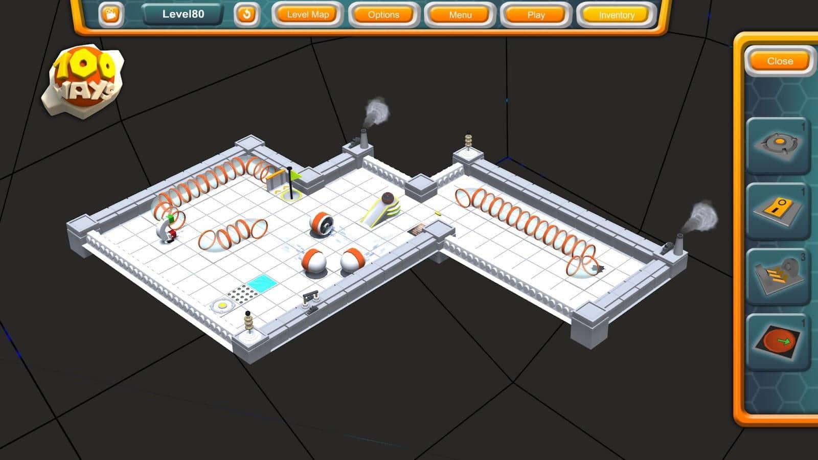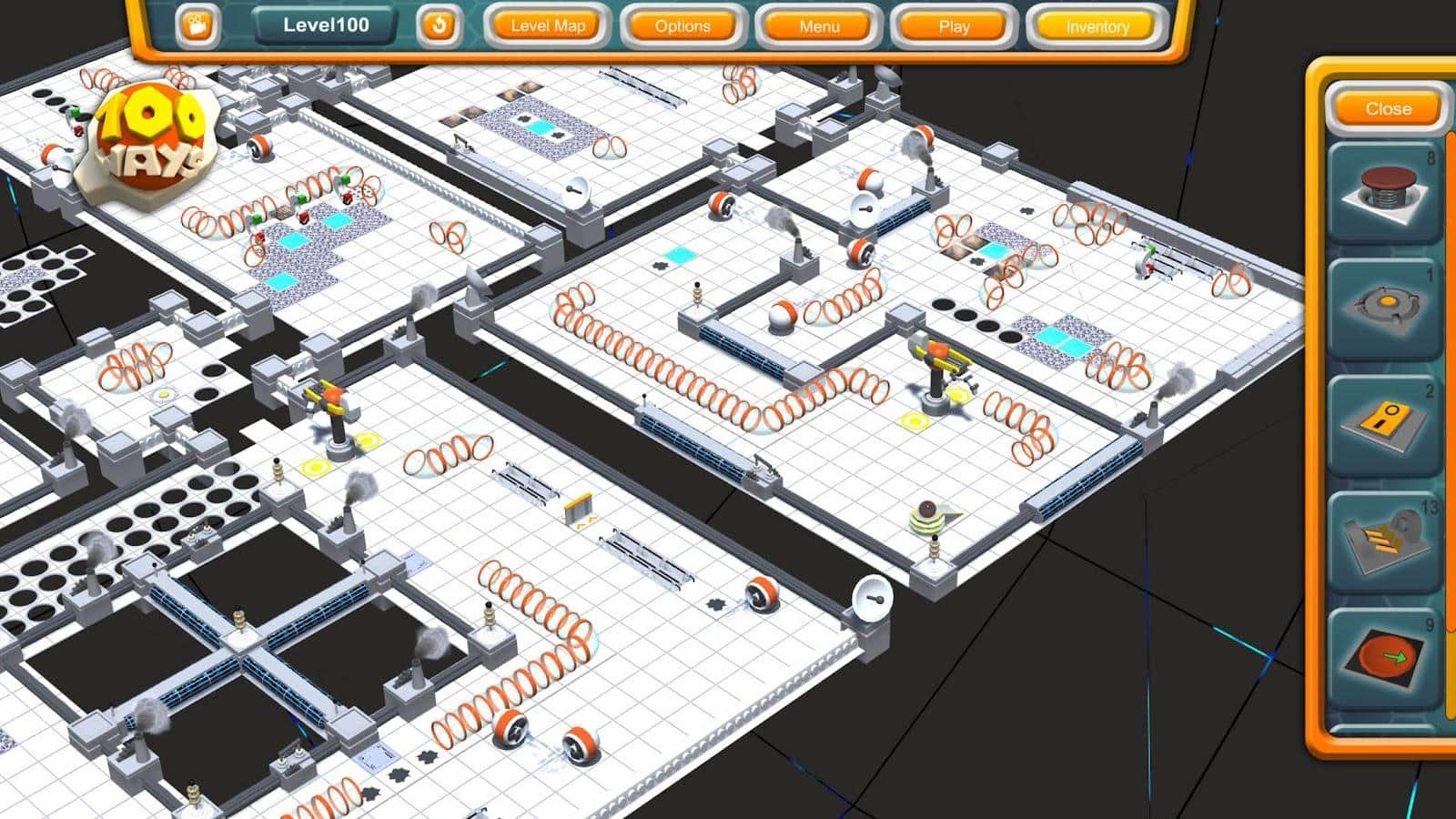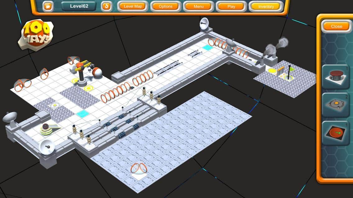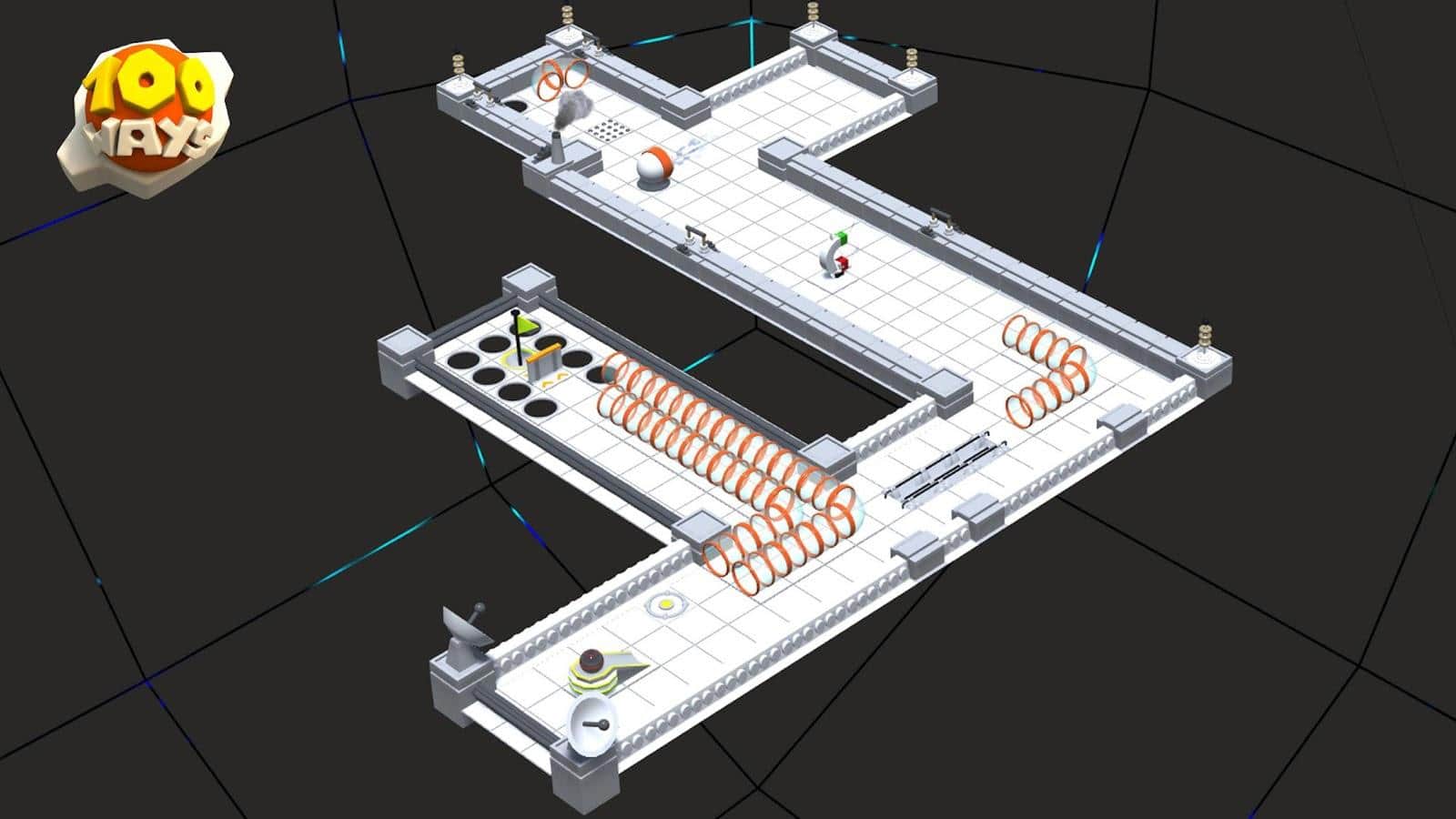 One Hundred Ways - Увлекательная головоломка, в которой очень много уровней. Все они представлены в виде одного поля, на котором будет множество препятствий. Вам будет выдаваться целый набор различных приспособлений, с помощью которых вы сможете изменять направление вашего шарика, подбрасывать его и многое другое. Все что вам нужно это доставить один маленький шарик из одной точки в другую. Однако с каждым новым уровнем это задание будет становится все сложнее и сложнее. У вас множество вариантов на выбор, и то как вы его доставите, зависит только от вашей фантазии.
