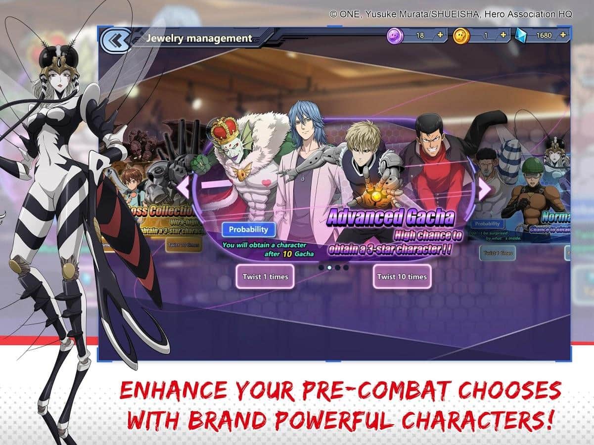 One-Punch Man: Road to Hero - в игре вам предстоит собрать команду героев различного класса. Изюминка в том, что герои и монстры максимально приближены к комиксу. Фактически, вы просмотрите One-Punch Man, не отрываясь от игры! Открывайте героев различного класса, формируйте команды из 12-ти персонажей, прокачивайте своих любимчиков. Открывайте новые сюжетные линии, исследуйте локации, побеждайте монстров! Пошаговая боевая система с комбо-ударами и супер-ударами. В ходе боя вы можете подкидывать, опрокидывать, оглушать и просто красочно пинать ваших противников. Ваши герои способны взаимодействовать и наносить эпичные комбо-удары. Так же, они копят энергию и наносят сокрушительные супер-удары!