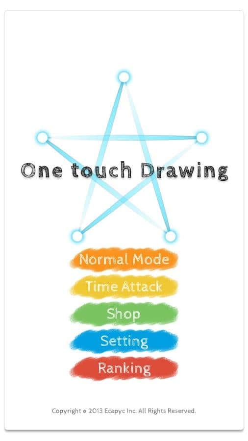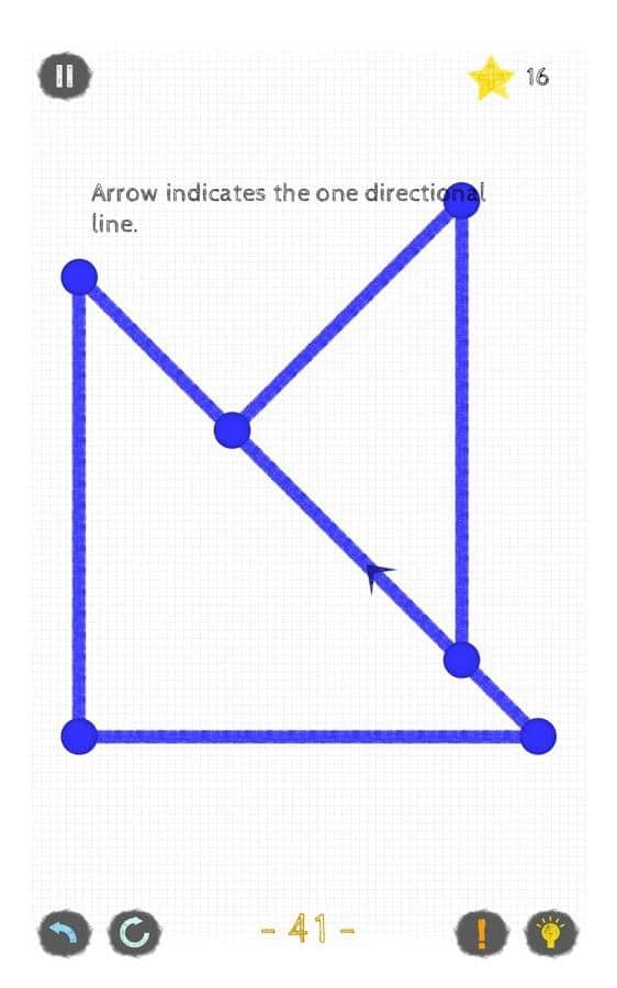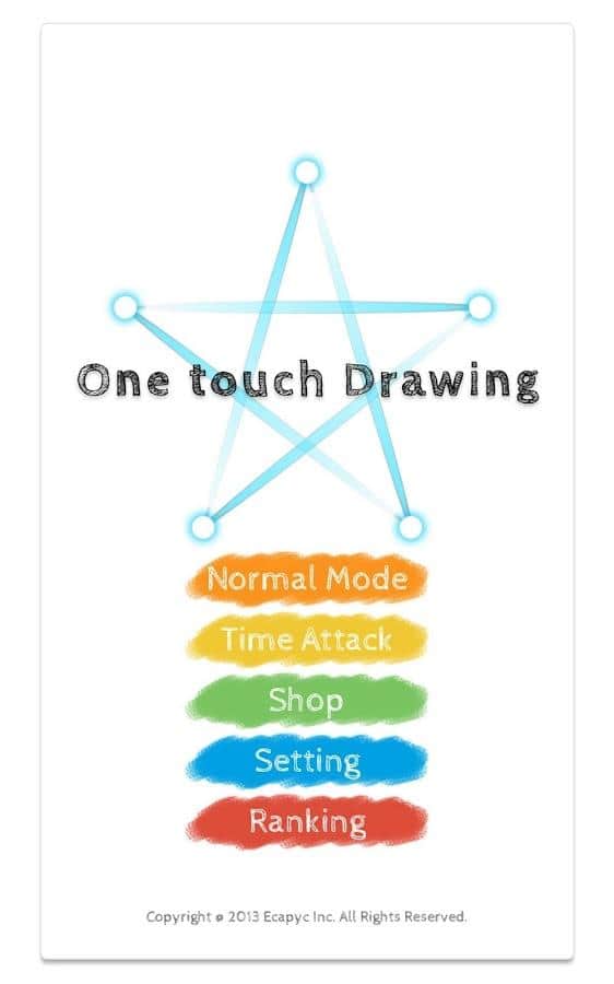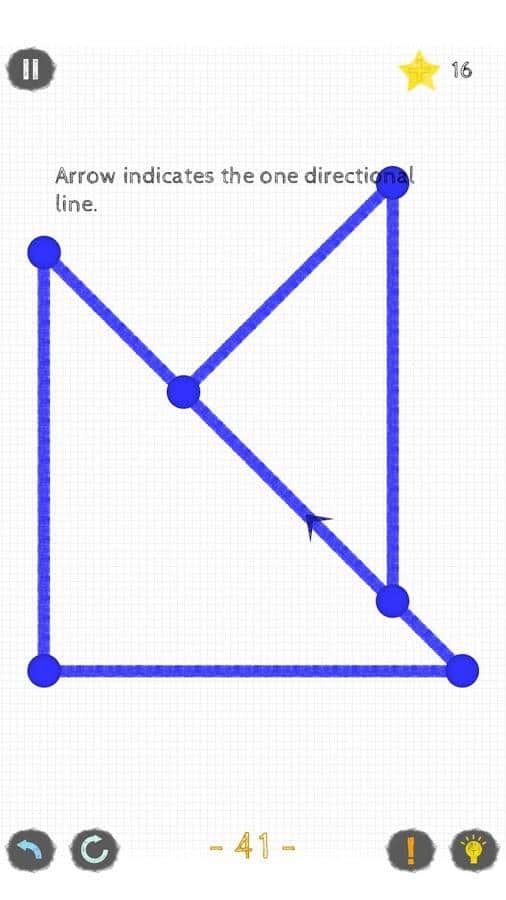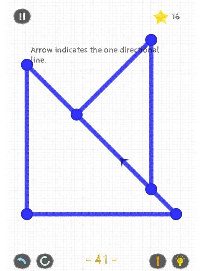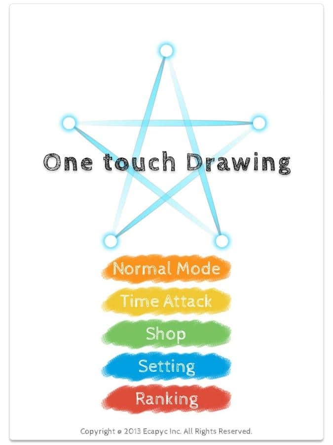 One touch Drawing - отличная головоломка на андроид, в которой вам необходимо повторить контуры разных фигур. Вся трудность заключается в том, что проводить одну линии на фигуре можно только один раз. С каждым уровнем фигуры становятся сложнее и вам предстоит приложить все ваши умстенные усилия для разгадки очередной головоломки. В игре есть специальный режим, который называют "режим выживания", в нём нельзя допустить ни единой ошибки.