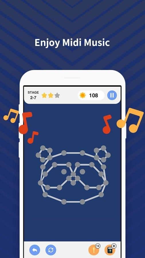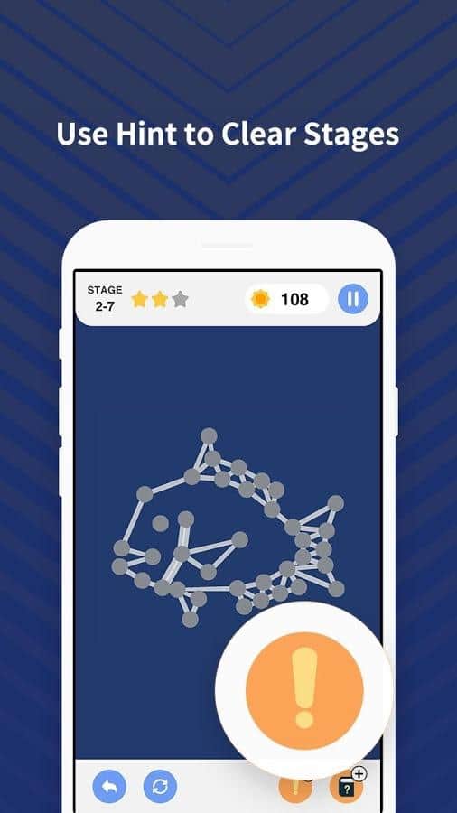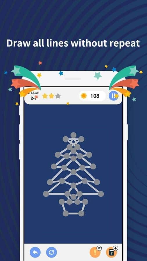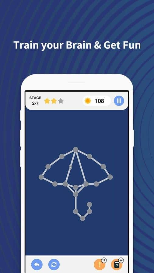 OneLine Draw - Очень забавная головоломка в которой нужно соединять точки линиями, при этом провести линию между точками можно только один раз. Правила игры очень простые, проходите уровень за уровнем, соединяете точки и получаете награду. Если вам будет сложно, можете воспользоватся подсказкой и узнать начальную точку, ну либо пропустить уровень полностью.