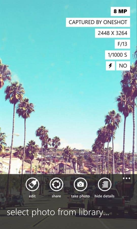 OneShot - профессиональная камера с высоким качеством эффектов для windows phone. В приложении находится много функций, которые вы можете применить при съемке фото, такие как различные эффекты, контраст, яркость, насыщенность, баланс белого, выдержка, ручной фокус и много других. Таким приложением очень удобно пользоваться и оно обязательно понравится любителям фотографий.