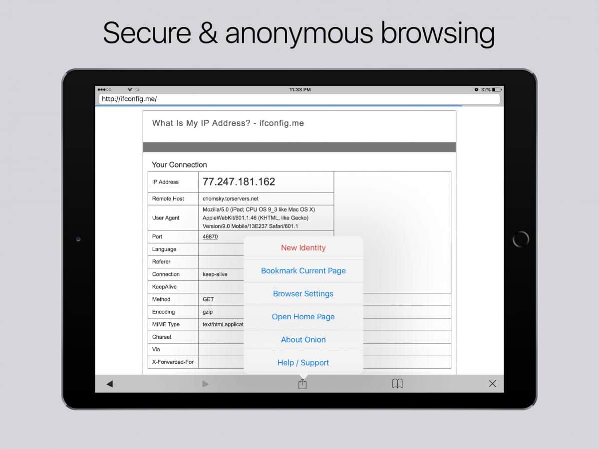 Onion - Великолепный браузер основанный на всем нам известном браузере Tor, он как и его аналоги может скрывать ваше реальное местоположение IP адрес и множество других данных о вас. Этот браузер ставит на первое место вашу анонимность, а так же дает вам полный доступ к любым ресурсам которые были заблокированы для вашего региона или вашей сети. Быстрая загрузка страниц и отсутствие ошибок так же считаются его сильными сторонами. Немного сложный интерфейс к которому быстро привыкаешь не станет проблемой для опытного пользователя.