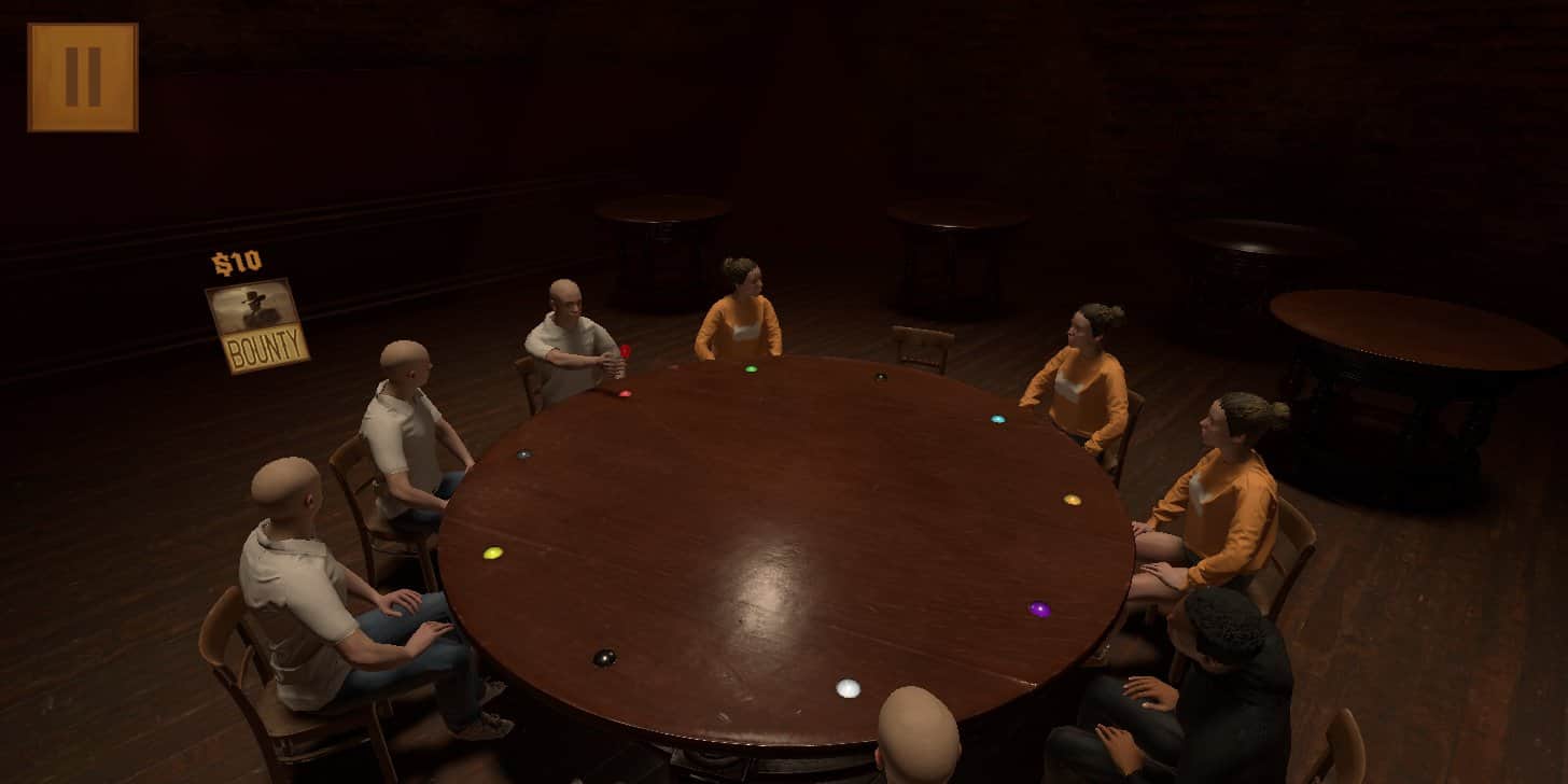 Обычная русская рулетка. В барабане из 6 патронов находится 1 патрон, каждый по очереди крутит барабан и стреляет в себя. Если тебе повезло, ты останешься в живых.