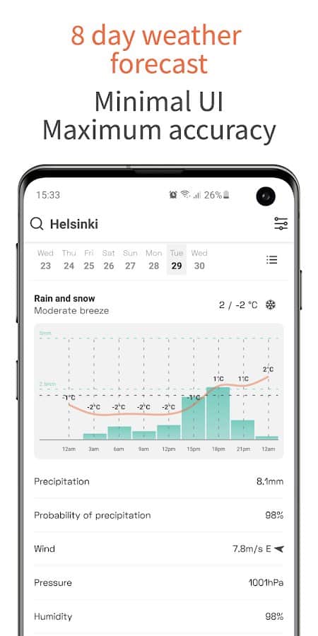 С приложением OpenWeather вы легко и быстро сможете планировать предстоящие дела в зависимости от погодных условий. Прогноз погоды будет всегда под рукой на вашем устройстве.