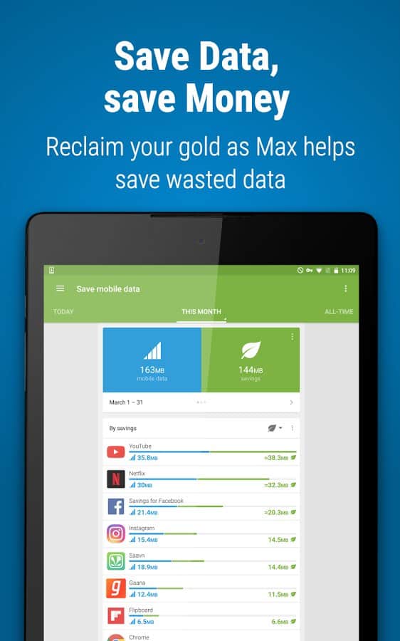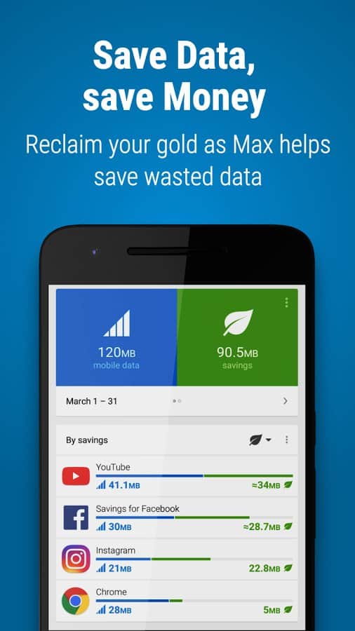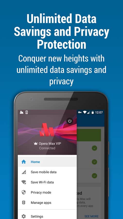 Браузер Opera по праву любим теми, кому приходится экономить трафик. Opera Max — новый шаг в том же направлении: пользуясь этим приложением вы сможете экономить до 50% потребляемого трафика, причем речь идет не только о мобильных сетях, но и о Wi-Fi подключении. Такой эффект достигается благодаря сжатию абсолютно всех поступающих данных: фото, видео и музыка и т.д. Причем речь идет не только о сайтах, которые вы просматриваете в браузере, но и трафике, который проходит через установленные приложения.