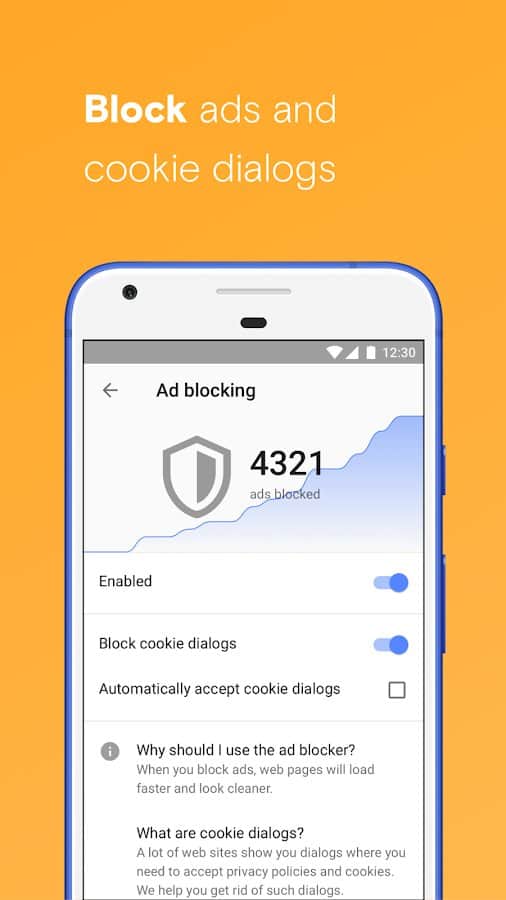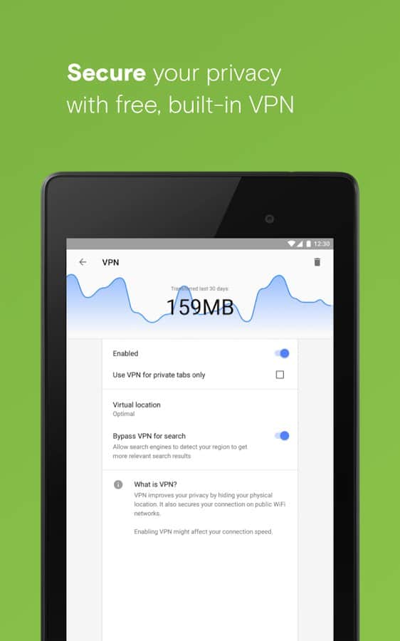 Лучший по моему мнению браузер. Ничего лишнего. Даже какой-то VPN имеется. Так ещё и бесплатный. Да, мало настроек, но что бы защититься хватит) А вот встроенный блокировщик не особо хорошо справляется со своей задачей. Если реклама вот конкретно мешает просмотру контента, то дополнительно можно скачать AdGuard (если только платную, с бесплатной чутка рекламка закрывается). Ещё бы хотелось увидеть что-то типа настройки обоев. А так все устраивает)