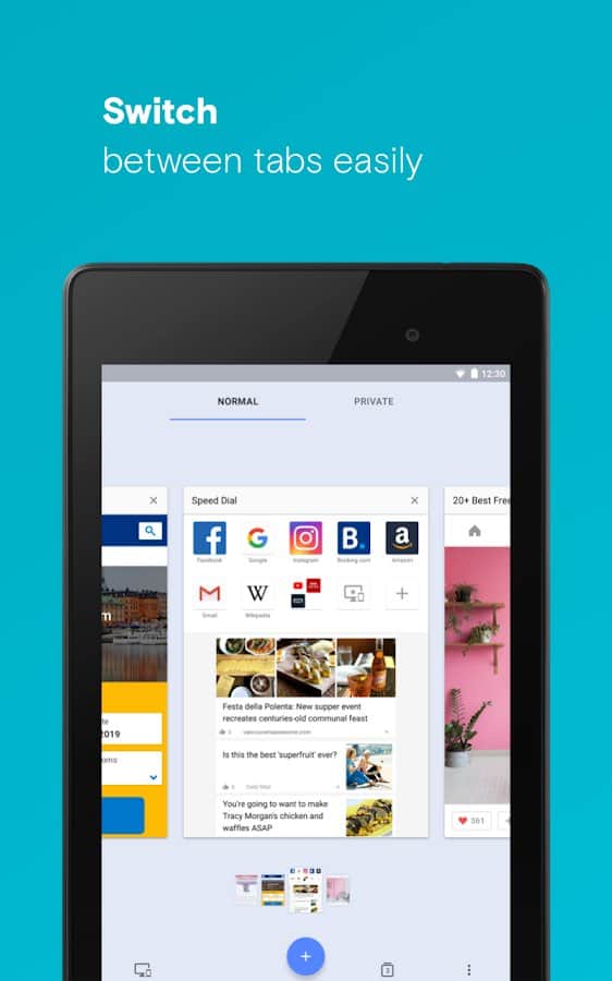 Браузер Opera - предлагаем вашему вниманию один из самых популярных браузеров от компании Opera Software для Андроид. Программа содержит интуитивный интерфейс, поддержку вкладок, функции Speed Dial и такие важные функции как аппаратное ускорение и поддержка pinch to zoom. Применяется технология Opera Turbo, при помощи которой серверы Opera сжимают страницы до 70%. Стоит отметить одну очень важную деталь - Opera Mobile потребляет большое количество заряда батареи, особенно на медленных соединениях лучше использовать Opera Mini. С выбором лучшего браузера на андроид вам поможет эта статья.