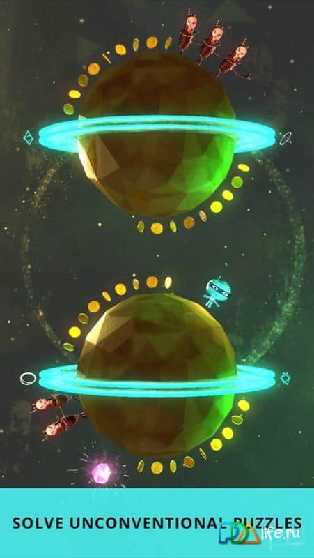 Orbit's Odyssey - Mystery Planet Puzzle Logic Game – увлекательная игра на IOS, где вы будете помогать забавному герою Орбиту, исследовать далекие планеты. Вашей задачей будет открывать для себя новую планету и исследовать ее, перемещаясь по ее поверхности и собирая монетки и алмазы. Перемещайтесь по планете и обходите стороной монстров, которые будут встречаться вам на пути. В игре представлено 90 неповторимых уровней, где вы будете решать непростые задачки и головоломки. Исследуйте поверхности планеты и открывайте для себя новых героев, которые имеют уникальный вид. Соберите как можно больше алмазов и установите свой рекорд в этой игре.