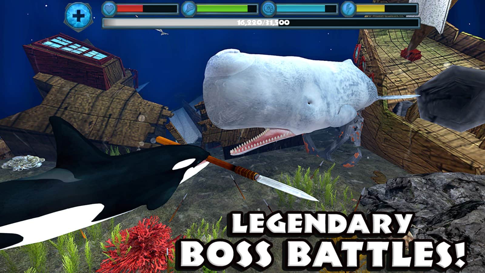 Проживите хотя бы день из жизни почти самого большого животного и убийцы в мире вместе с симулятором Orca Simulator. Касатка - особенный зверь, которого боятся все животные в Северном ледовитом океане.Погрузитесь на большую глубину, пытаясь выжить. Хоть вы и гигант, но есть и побольше вас: синие киты, кракены, стаи акул и прочие хищники. У вас будет ограниченная энергия, запастись которой можно только питаясь мелкими рыбами. Вы научитесь правильно охотиться, сможете завести семью, исследовать водный мир и его особенности. Также, в игре присутствуют достижения, бонусы и энциклопедия животных.
