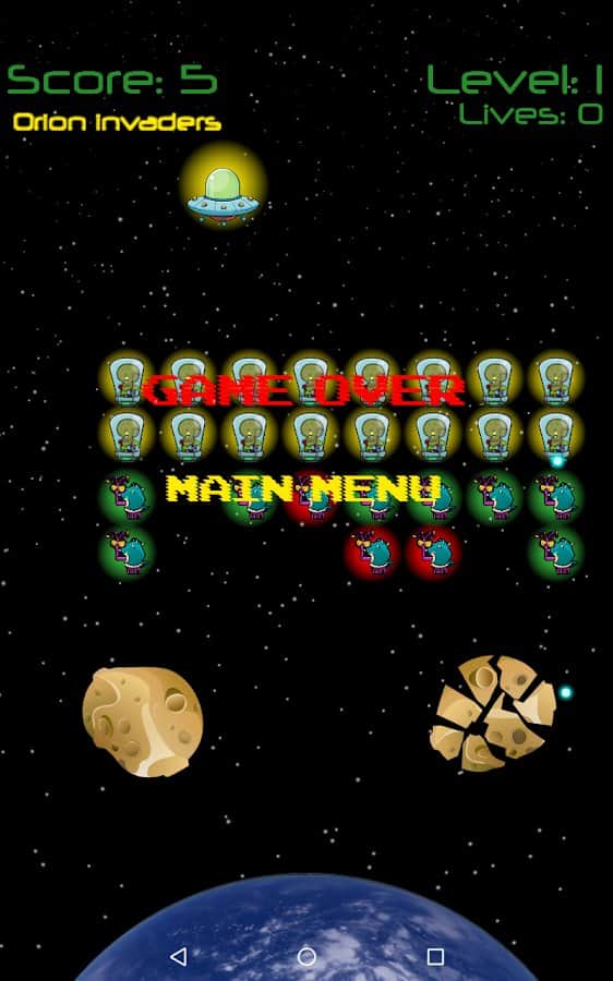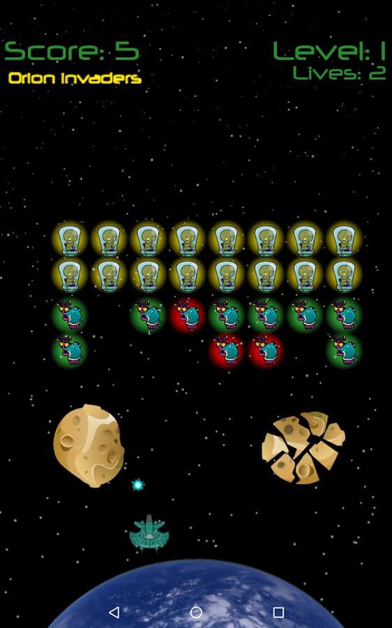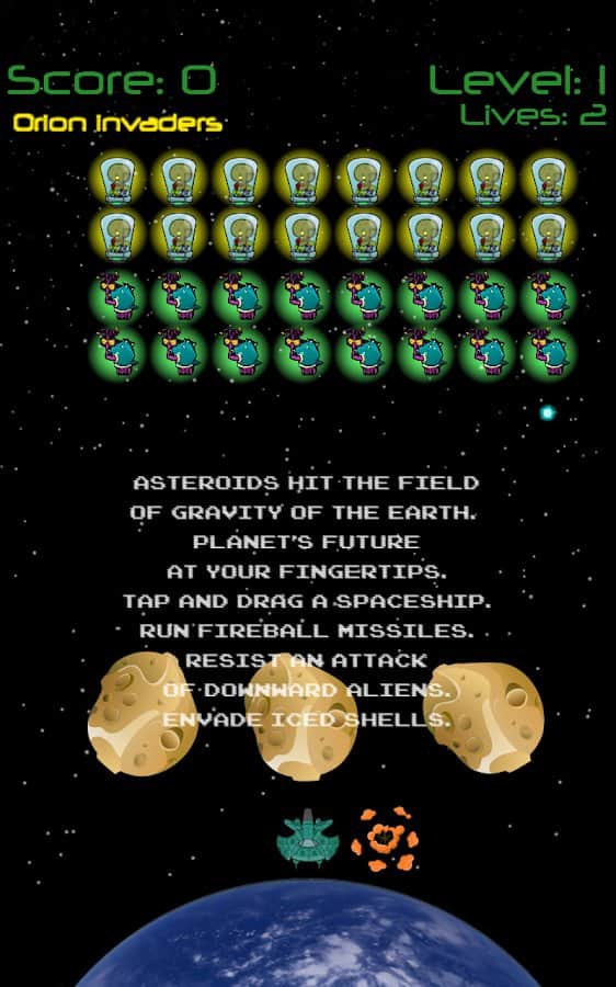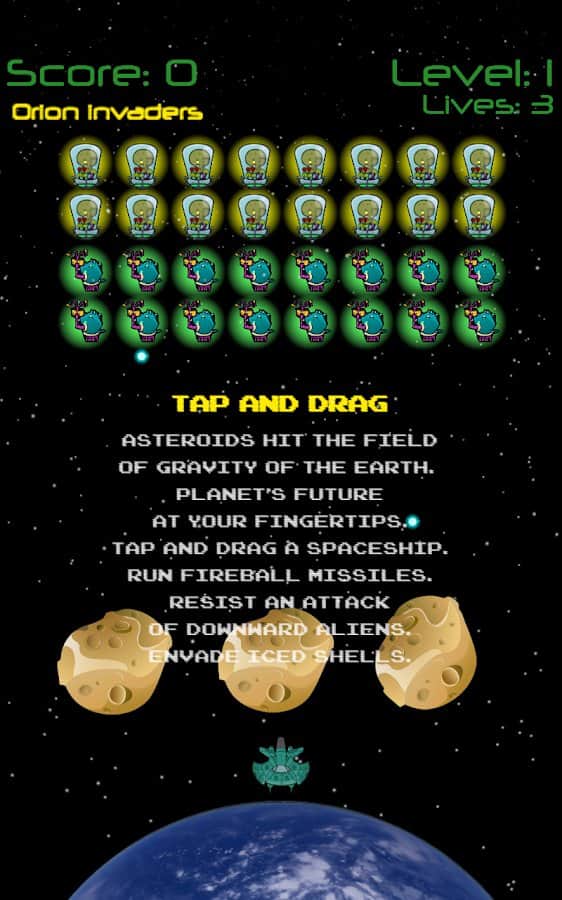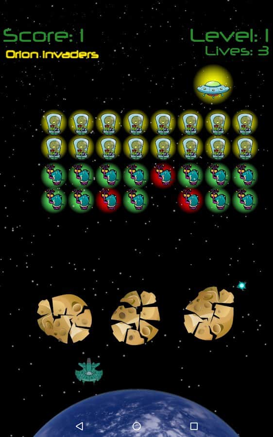 Orion invaders - Space Shooter - Будущее всей планеты лежит у вас на плечах, только от вас зависит, будет ли она процветать или ее захватят вражески настроенные орионцы. Загадайте тактику захватчиков, почти всегда в качестве тактики для своего пути они выбирают траекторию змеи либо же круглую, каждый новый уровень они будут становится все быстрее и сильнее. Пришельцы могу принимать любую форму начиная лампочкой и заканчивая доспехами, но не волнуйтесь, на фоне неба они будут слабо подсвечиваться. После полного уничтожения одной группы пришельцев на их мечте появится другая, сражайтесь до последнего, защитите свою галактику любым способом!