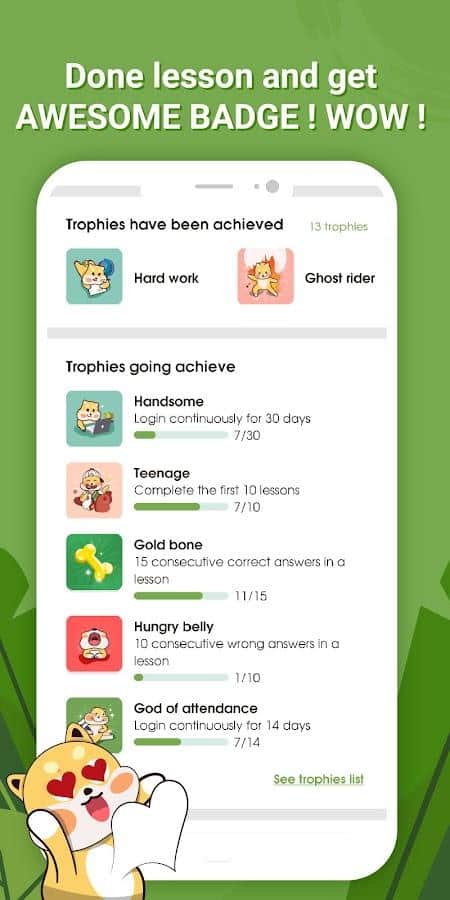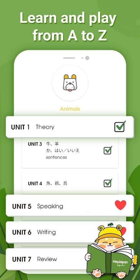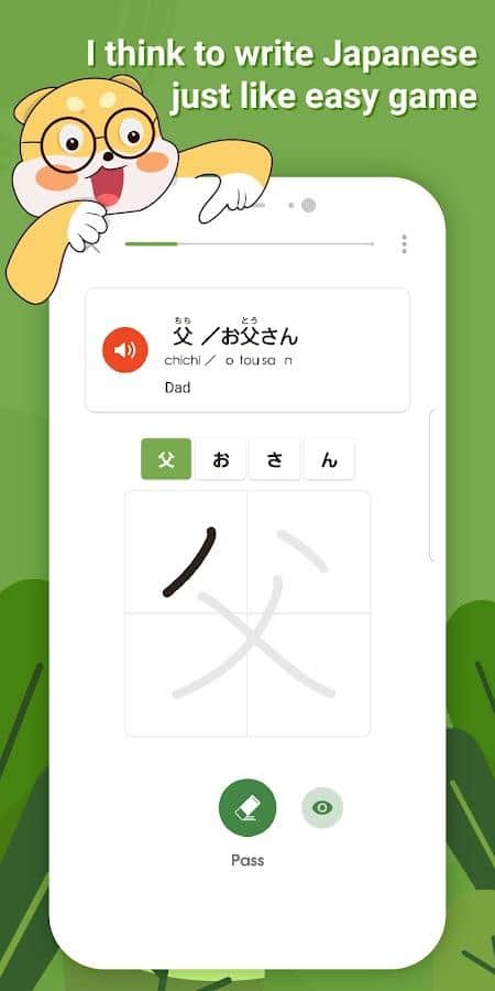 Проходите эффективные уроки по изучению японского языка быстро и легко: постоянно пополняйте свой словарный запас новыми словами, изучайте сложную грамматику, запоминайте алфавиты хирагана и катакана, проходите практику аудирования лексики на японском, оттачивайте навыки письма, учитесь во время игры и читайте теории. Совсем скоро вы значительно улучшите собственные знания, даже если будете уделять этому трудному языку 20 минут в день. Главное вовсе не сколько информации вы выучите, а как и насколько ее запомните.