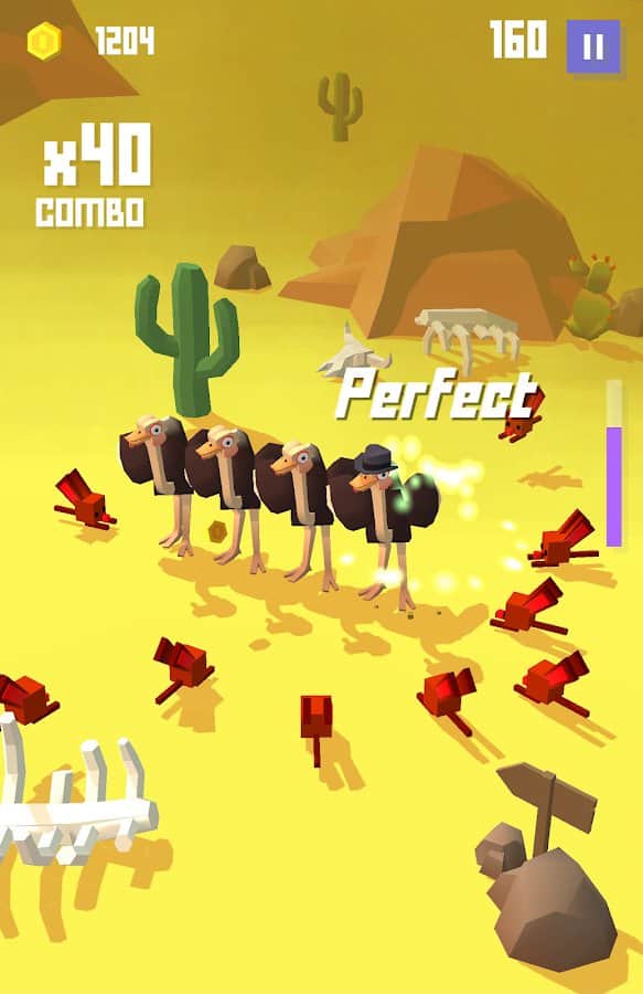 Ostrich Among Us - забавная аркадная игра в полигональном стиле в которой вам предстоит играть в роли незадачливого страуса который попал в танцевальную группу, но при этом совершенно не имея навыков, ваша задача помочь ногастой птице освоить основные па. По мере освоения танцевальных основ вы сможете принять участие в конкурсах и постараться продержаться на танц-поле как можно дольше и заработать больше денег которые сможете потратить на развитие своего персонажа.