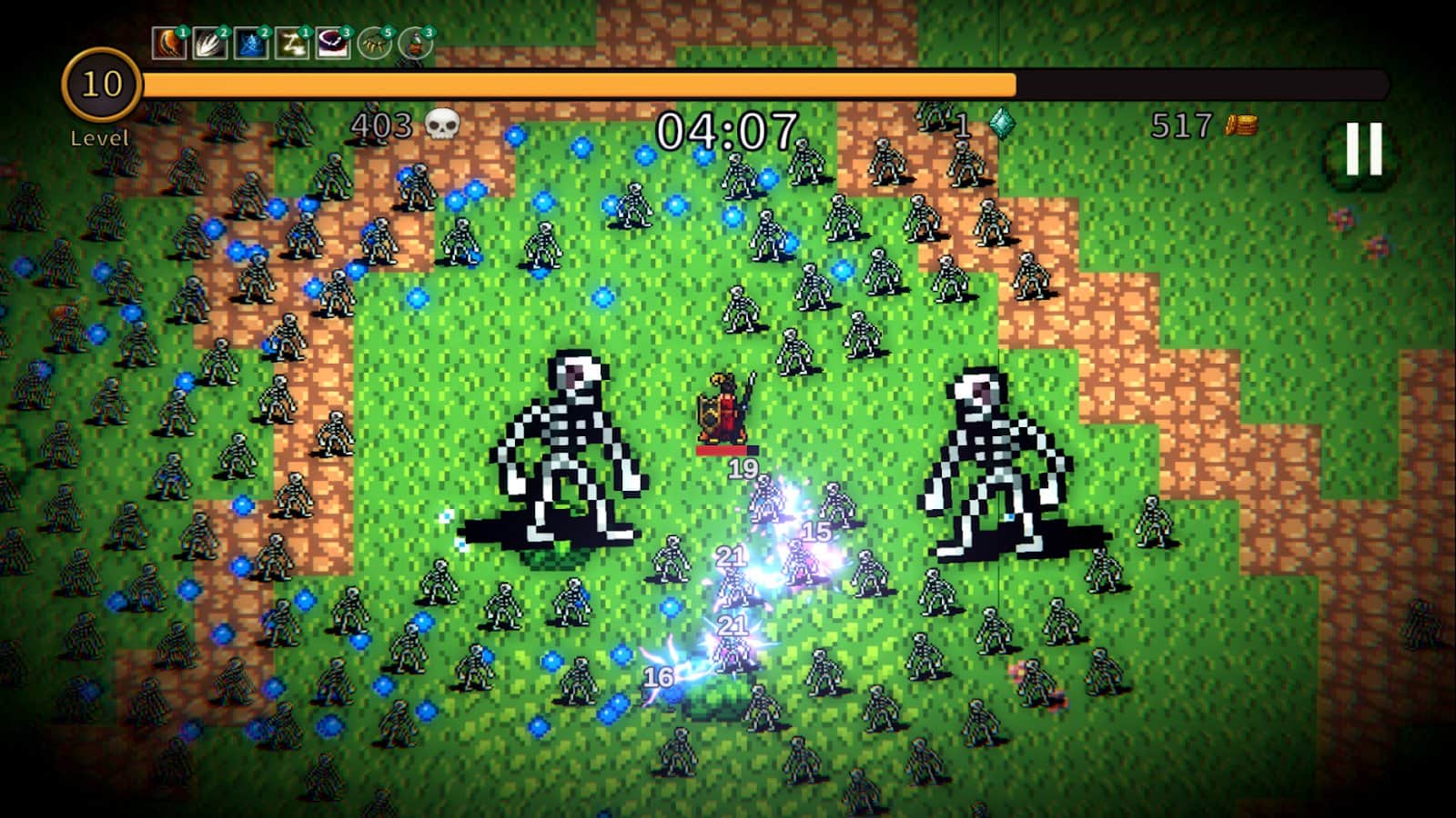 Геймплей как в "Magic Survival" – только бегаешь, а атаки сами на ближайшего врага [это уже не удивляет, вот то-то было когда "Magic Survival" впервые вышел, было оригинально (и если кто-то скажет что дескать Magic Survival не первый такой, а было ещё там до него, то я незнаю, "Mag. Surv." в МОИХ глазах первая, она отлично раскрыла именно этот жанр и по праву впечатлений, ей конечно респект...]