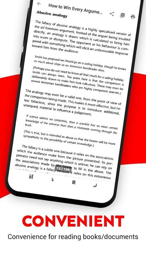 Легко открывайте PDF файлы через телефон и не только читайте их, но и редактируйте, печатайте! Самый лучший вариант для использования этого приложения — загружать различные электронные книги, какие после загрузки вы будете читать, помечать в них важные детали или цитаты, а также добавлять заметки для добавления дополнительной информации. Используйте время с пользой, при этом пользуйтесь приложением не только для чтения PDF, но и других форматов: docx, XLS, PPT, TXT. Внутри, в свою очередь, есть переключение между светлой и темной темой для удобства при чтении.