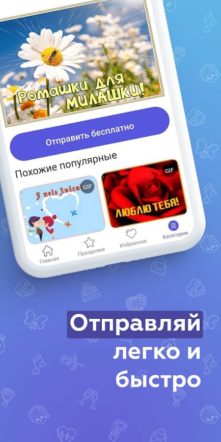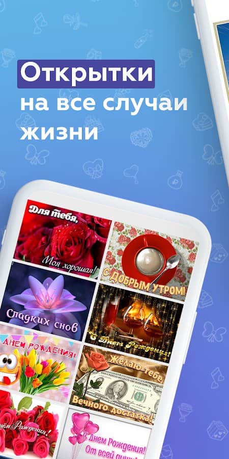 Открытки на все случаи жизни, поздравления и GIFsХотите оригинально и со вкусом поздравить своего близкого человека, но не всегда хочется искать в интернете соответствующее поздравление? Тогда скачайте на свое устройство "Открытки на все случаи жизни, поздравления и GIFs" и оно в любое время и в любом месте будет у вас под рукой. Вам будут доступны картинки, стикеры, открытки с теплыми словами, анимациями и яркими впечатлениями, которые вы можете отправить как в соцсетях, так и в популярных мессенджерах абсолютно бесплатно. Сборник поздравлений представлен как тематическими стихотворениями на день рождения, Новый год, 8 марта, День России и т.д., так и на каждый день.