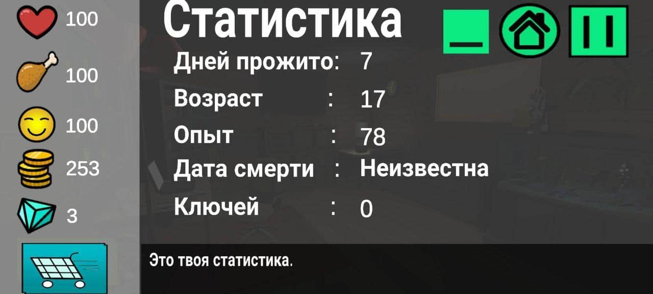 Графика довольно не плохая, хоть и ни на что не влияет. Геймплей ультра скучный. Просто спишь, фармишь деньги, включаешь и выключаешь свет, снова фармишь деньги, пытаешься натыкать что-то ещё ибо это единственное что можно делать с окружением, тыкать и смотреть что он об этом пишет. "Это мои рыбы, через него классно дуть, это мои родители и они мертвы(я не шучу, он сирота, не смейтесь над ним!), Это просто окно и т.д." Самое главное просто не умереть. Кароч скучно. Там ещё ачивки есть, но большая часть связана с заработком в игре.