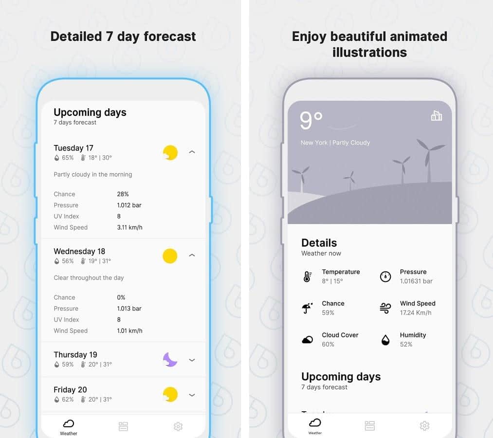 Узнать точный прогноз синоптиков при помощи удобных и ярких виджетов - основная задача приложения Overdrop - Animated Weather & Widget. Вы будете знать наперед, какая погода за окном, как лучше одеться, чтобы не замерзнуть. И не забудьте взять зонт, если на улице дождь.