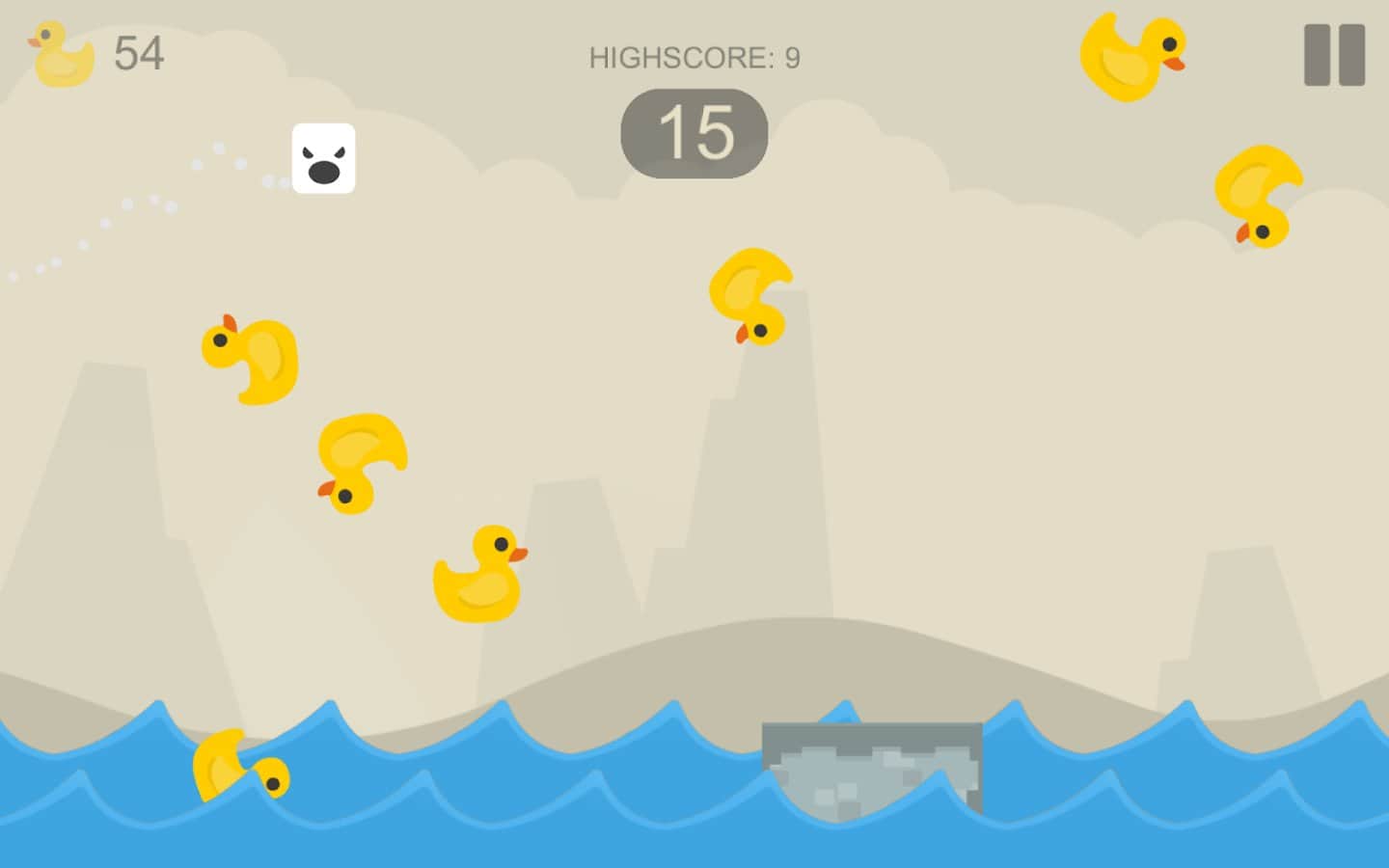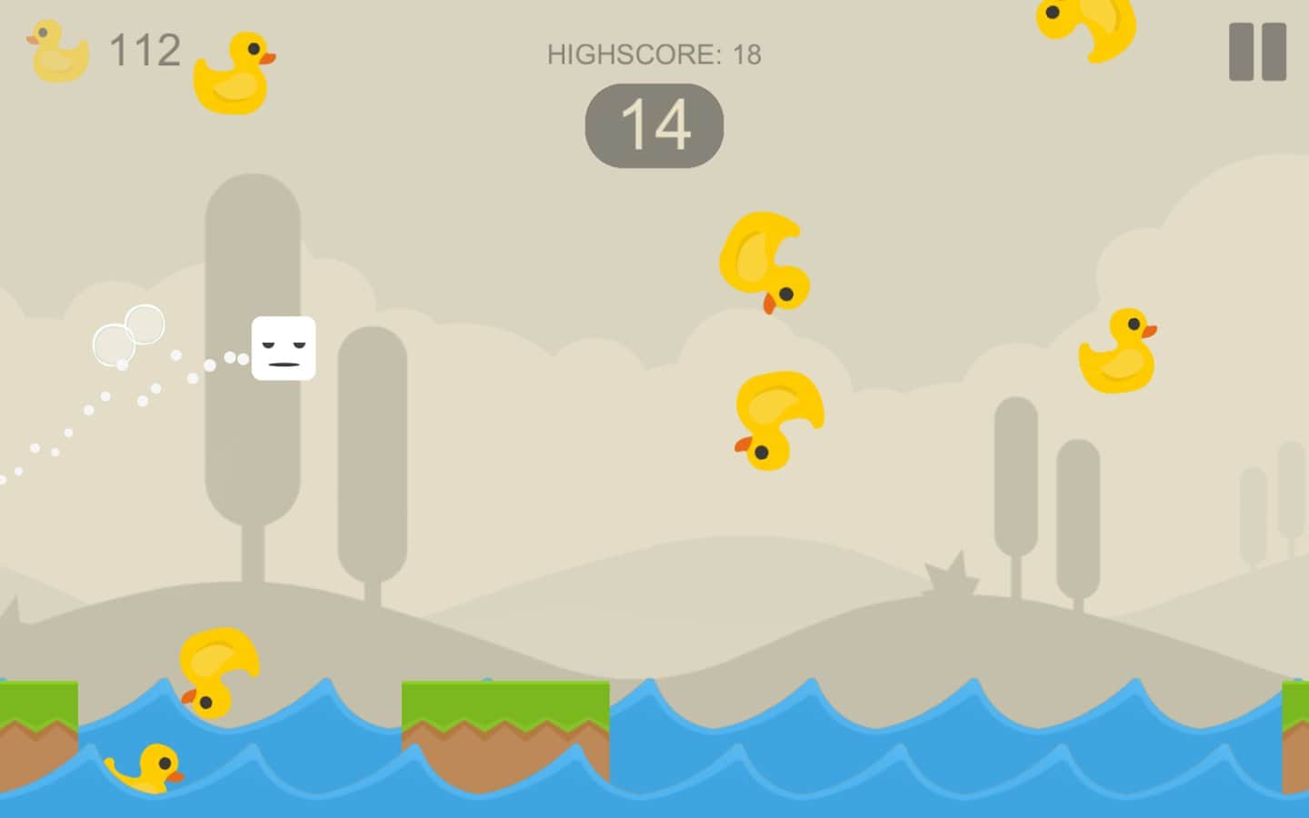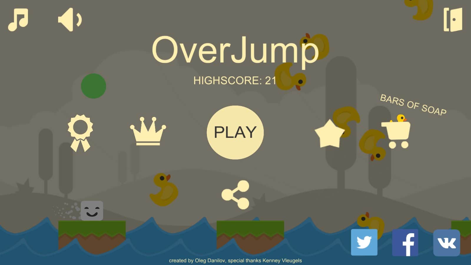 OverJump – увлекательная инди игра на андроид, где вы будете управлять мылом. В этой игре вы попадете в забавный мир, где с неба падают в бесконечном потоке уточки. Управляйте кусочком ароматного мыла и совершайте прыжки, передвигаясь по платформам, если вы не рассчитаете расстояние до следующей платформы, то погибните упав в воду. Прыгайте с одной платформы на другую и собирайте как можно больше жёлтых уточек, которые помогут вам разблокировать смешные мордочки, которые выражают различные эмоции для вашего кусочка мыла. Играйте в эту игру и весело проводите свое свободное время.
