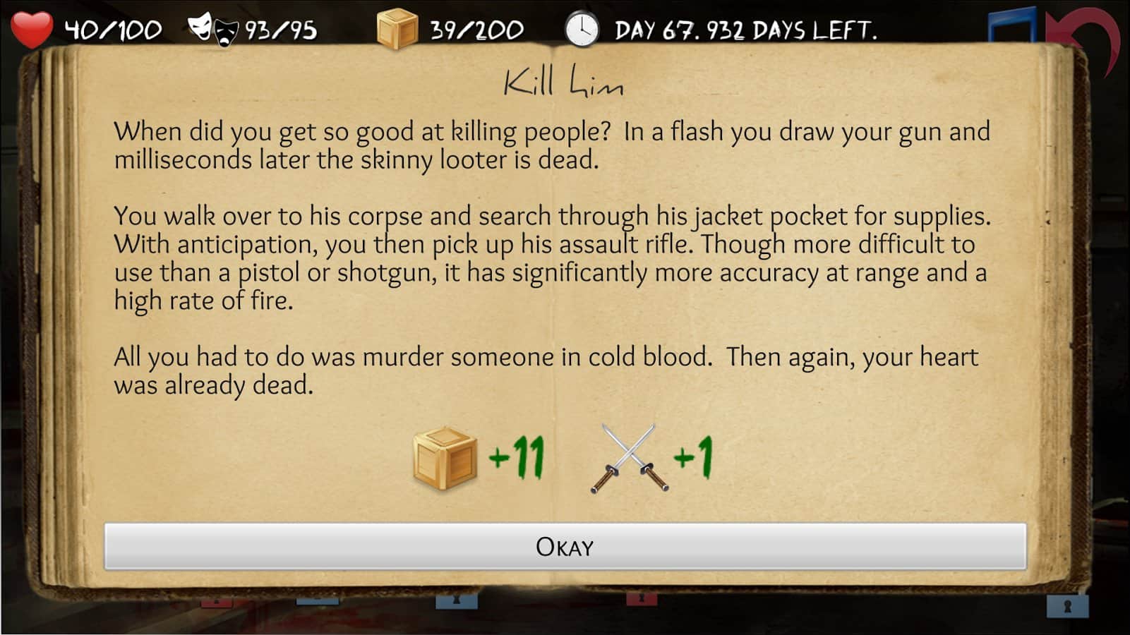 Overlive: Zombie Survival RPG - Весь город наводнен зомби - инфицированными! Ваша семья погибла! Выживите в этом зомби - апокалипсисе и сбежите из заражённого города до того времени, пока у вас еще есть силы. Выполните более 1000 уникальных задач путем обучения 9 навыков: быть незаметным, компьютерным хакером или яростным пиромантом и т.д. Побывай в более 18 зараженных местах города, чтобы найти выживших, получи новое оружие и снаряжение, а также обновления для своего дома. Найди один из 8 возможных окончаний и добейся наилучшего возможного результата игры. Не сможешь ли ты выжить в этом опасном городе, не становясь самому зомби!