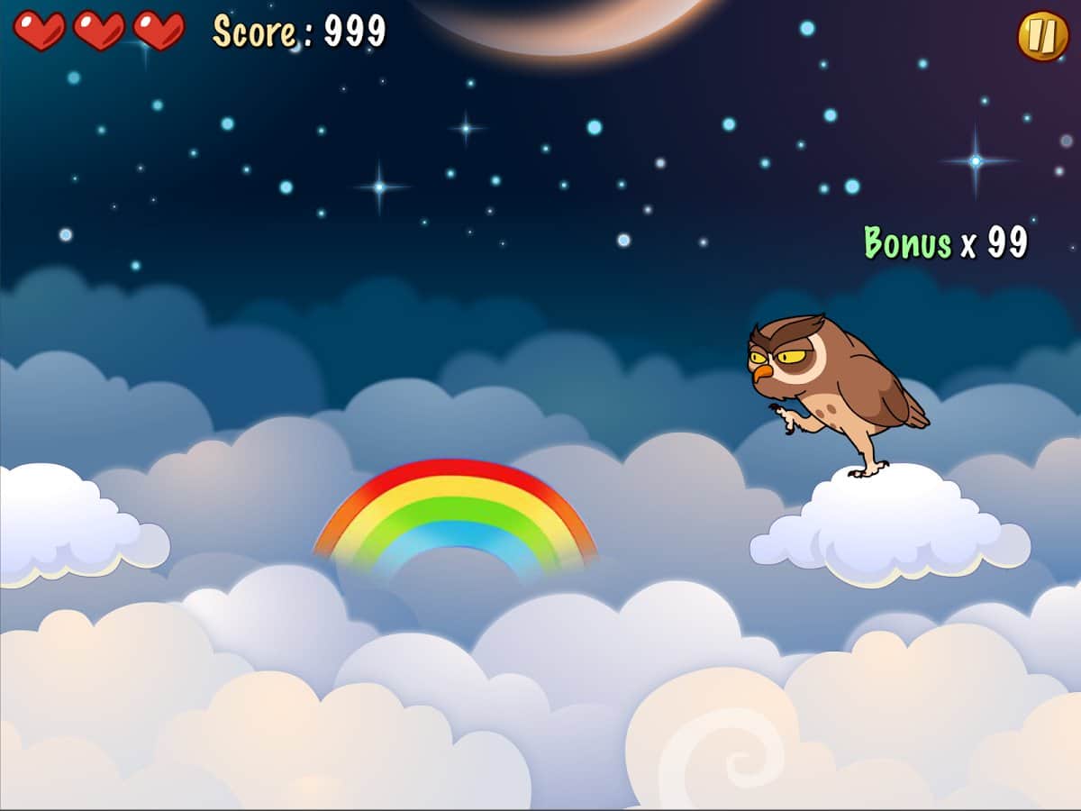 Owl Dash - A Rhythm Game – платформер на андроид, где вы отправитесь в увлекательное путешествие по различным локациям. В этой игре вам необходимо управлять совой, которая прыгает по платформам в такт музыки. Положитесь на свои музыкальные навыки и поймайте нужный ритм, чтобы помочь сове пройти как можно дальше в этой игре. Нажимайте в нужный момент на экран телефона или планшета и сова будет совершать прыжок. Всего у совы будет три жизни, одна ваша ошибка будет стоить сове 1 жизни, а если потеряете все, то вернетесь в начало игры. Попробуйте пройти как можно дальше и установите свой рекорд, путешествуя по трем локациям.