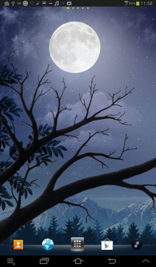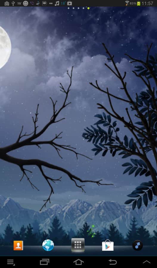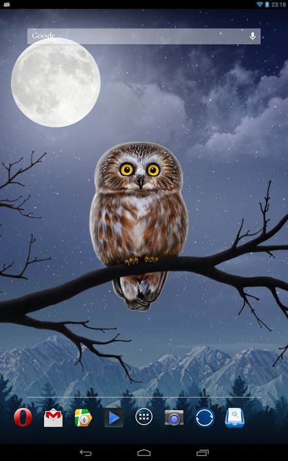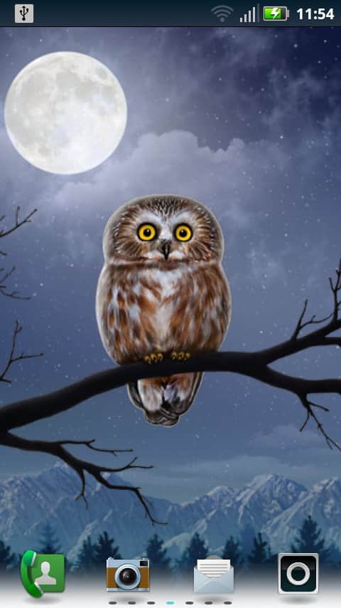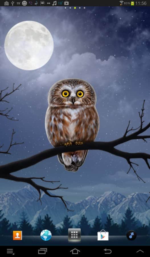 Owl Landscape – симпатичные живые обои от разработчика Vixarix для адроид с ночным хищником, сидящим на ветке. Горный ночной пейзаж, облака, проплывающие по небу, яркая желтая луна – казалось бы, ничего особенного, но смотрится достаточно неплохо. Обои не расходуют батарею больше обычного и не содержат рекламу.