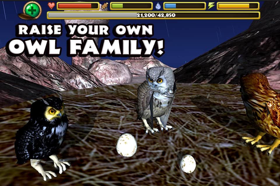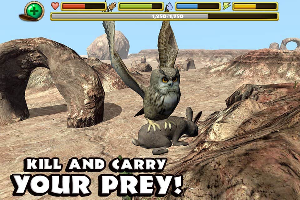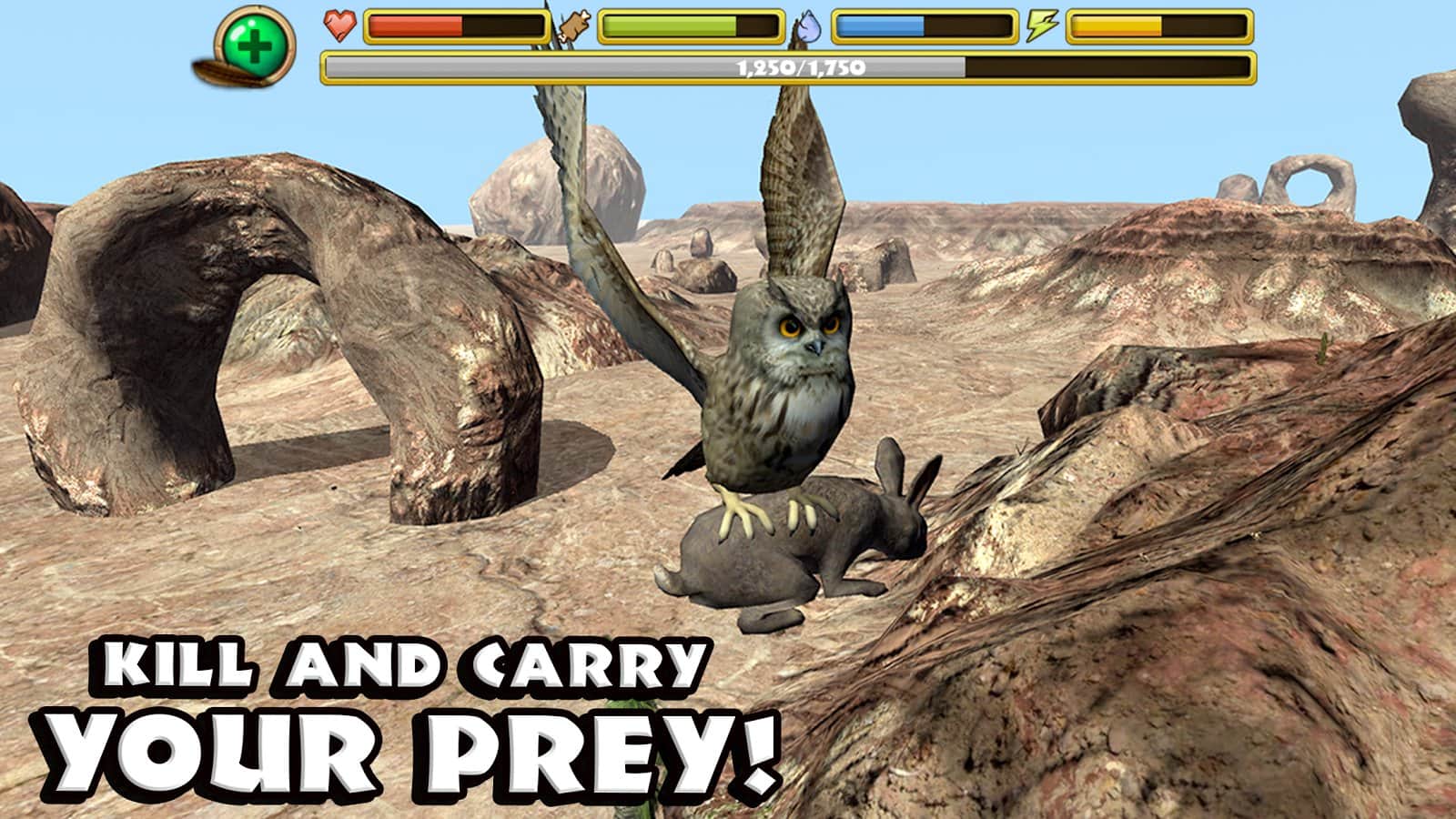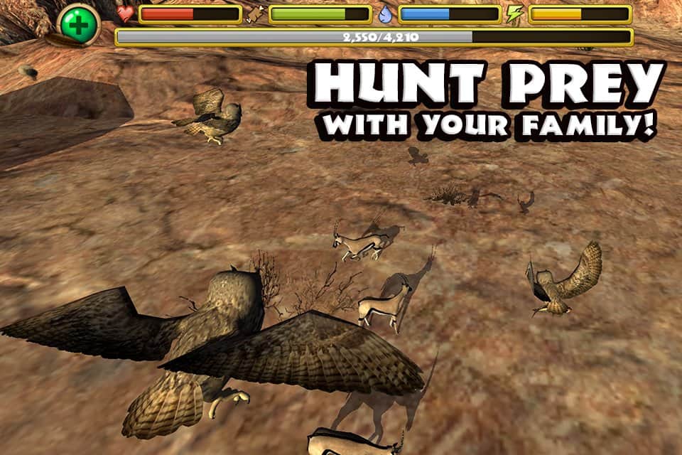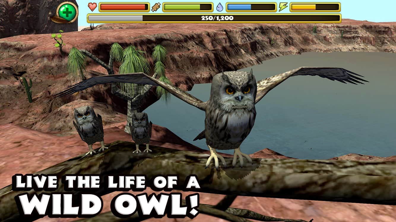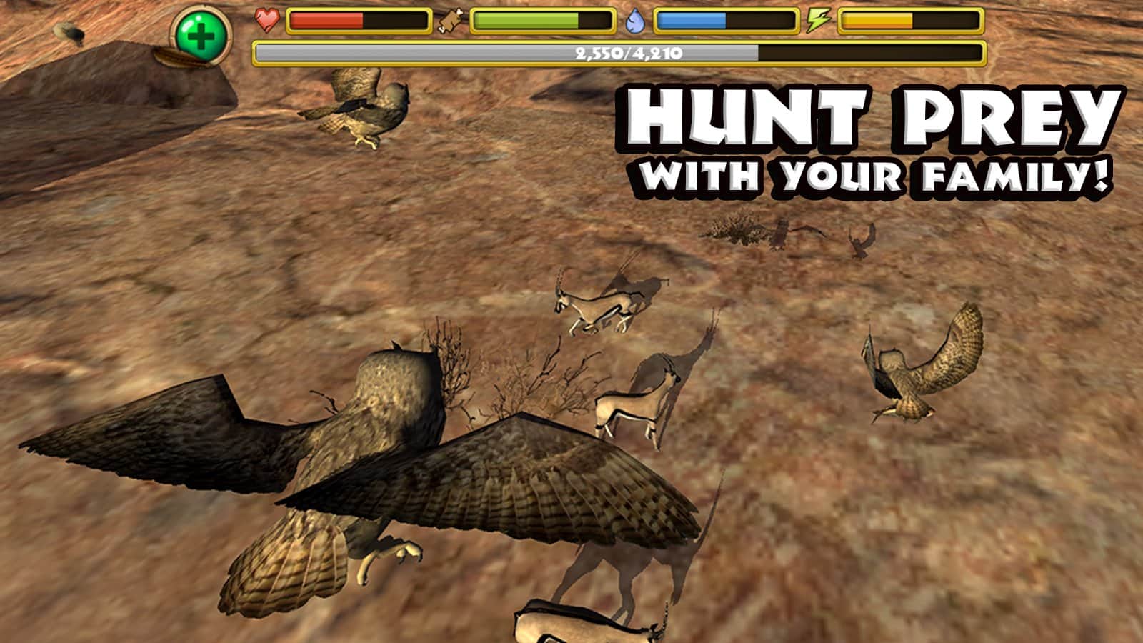 Owl Simulator - реалистичный симулятор рогатой совы на андроид, с огромным открытым миром для исследования. В этой игре вам предстоит парить на огромной высоте над пустынями, горами, каньонами и наслаждаться открывающимися видами. А также не забывайте, что это реалистичный симулятор, где вам еще предстоит кормить, утолять жажду и пополнять энергию вашей совы. Перед тем как начать игру просмотрите руководство по выживанию в опасных условиях, где вам не только предстоит проходить различные миссии, но и пробовать создать семью для продолжения своего рода. Попробуйте выжить в опасных условиях и сразиться с опасными хищниками, такими как рысь, койот и пума.