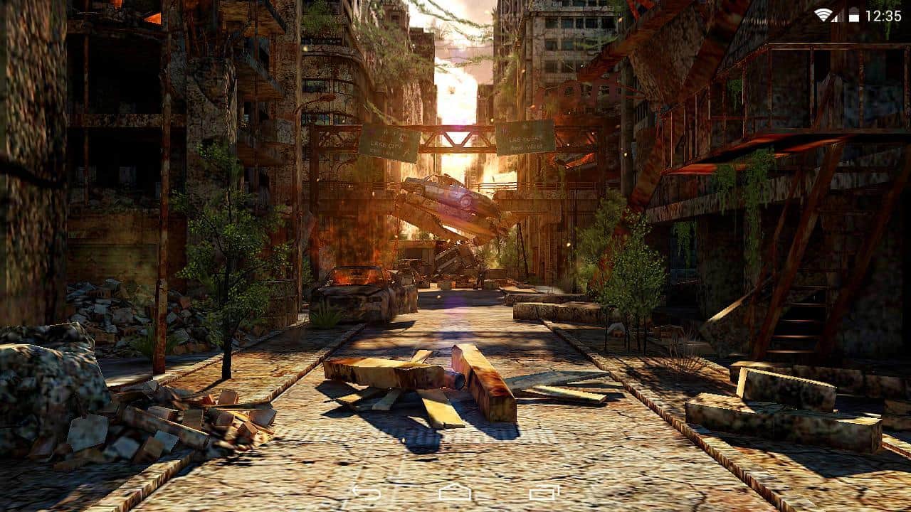 OXON L.W.Apocalypse 3D (OXON live wallpaper ) – Это новые, анимированные живые обои 3D, для вашего телефона и планшета!Почувствуйте настоящий и живой мир 3D прямо у вас в телефоне или планшете. Окунитесь в атмосферу апокалипсиса, разрушенного и пустынного города. В живых обоях реализовано два абстрактных сюжета: «Лето» и «Зима». Для каждого из сюжетов предусмотрен свой стиль оформления и набор эффектов. Сюжет «Лето» включает в себя анимированную 3D сцену летнего пустынного города, пять летних бекграуднов и пять вариантов освещения для каждого бекграунда. Так же предусмотрена опция включение реалистичного эффекта дождя. Сюжет «Зима» включает в себя 3D сцену зимнего пустынного города. Так же как и для летнего сюжета, в зимнем сюжете предусмотрено пять бекграуднов. Вариант освещения в зимнем сюжете один. По желанию пользователя можно активировать функцию падающего снега, что делает сцену более живой и реалистичной.