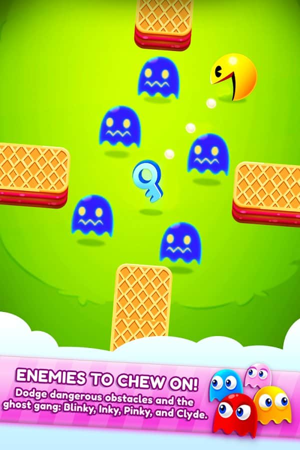 PAC-MAN Bounce – игра головоломка, в которой вы будете управлять PAC-MAN и проводить его по различным вкусным уровням. В этой игре вы сами будете управлять главным героем, рисуя ему путь с помощью пальца и делая это так чтобы по пути собрать все фрукты и получить ключ на следующий уровень. Управляйте PAC-MAN и поедайте всех своих врагов, а также отскакивайте от стенок лабиринта и собирайте при этом труднодоступные звезды. Прибегайте к помощи всей своей логики и попробуйте пройти все 100 уровней с разными препятствиями и задачами. Игра порадует вас яркой графикой и разнообразными мирами.