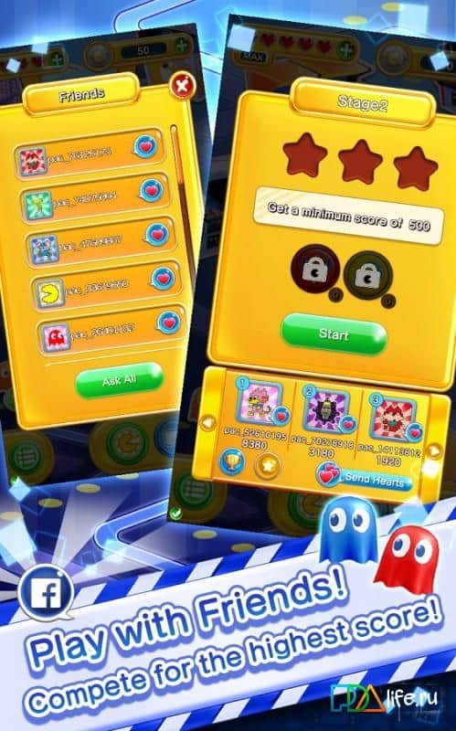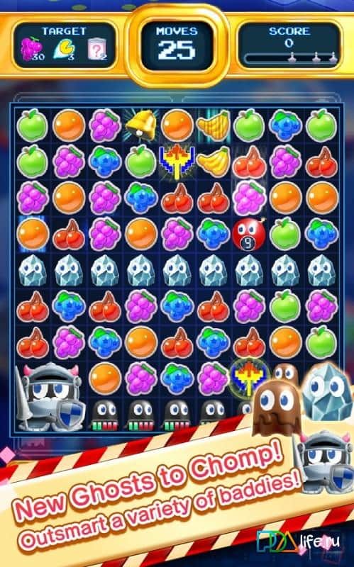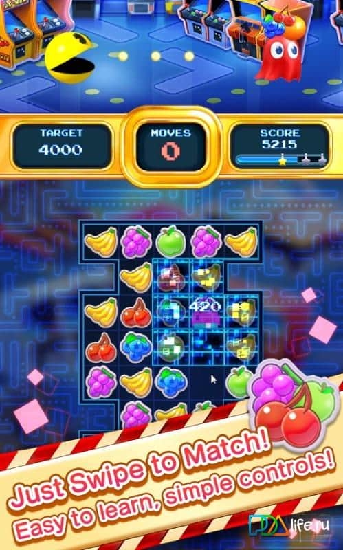 PAC-MAN Puzzle Tour – игра из жанра три в ряд со знаменитыми героями призраками и Пэк-Мэн. В этой игре вы будете помогать Пэк-Мэну, покинуть игровой автомат и догнать нахальных призраков, которые украли все фрукты из игры. Применяйте все свое логическое мышление и составляйте ряды из фруктов, чтобы помочь герою настичь призрака. Переставляйте между собой фрукты и собирайте как можно длиннее ряды из одинаковых фруктов, проделывая комбо удар и позволяя герою обхитрить призрака. Применяйте различные усиления и бонусы и проходите быстрее уровни. Устанавливайте свои рекорды в игре и поднимайтесь на самый верх таблицы лидеров.
