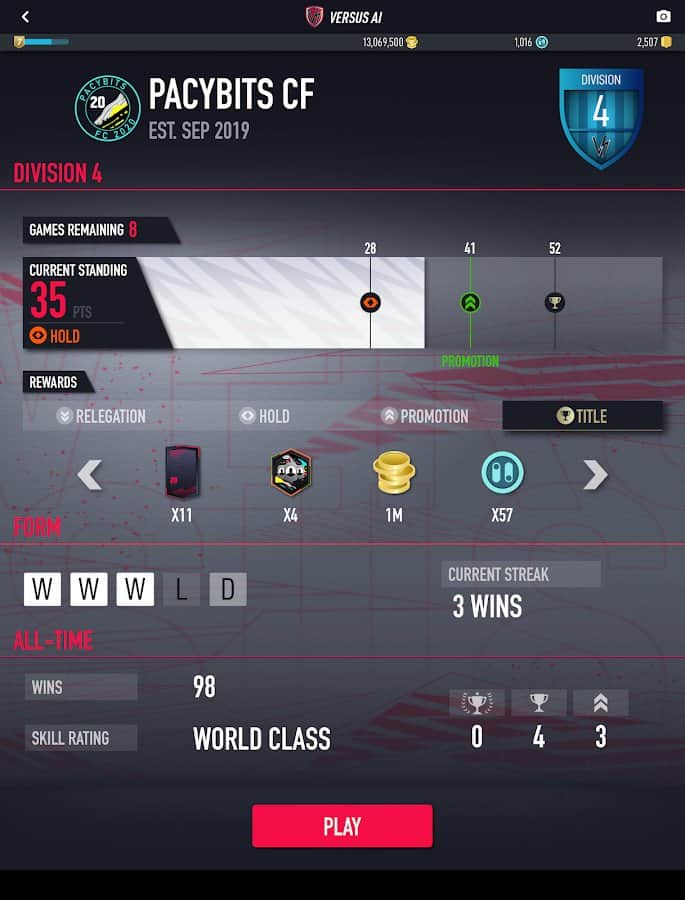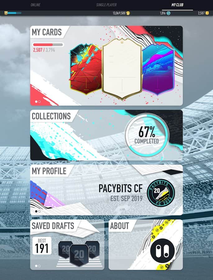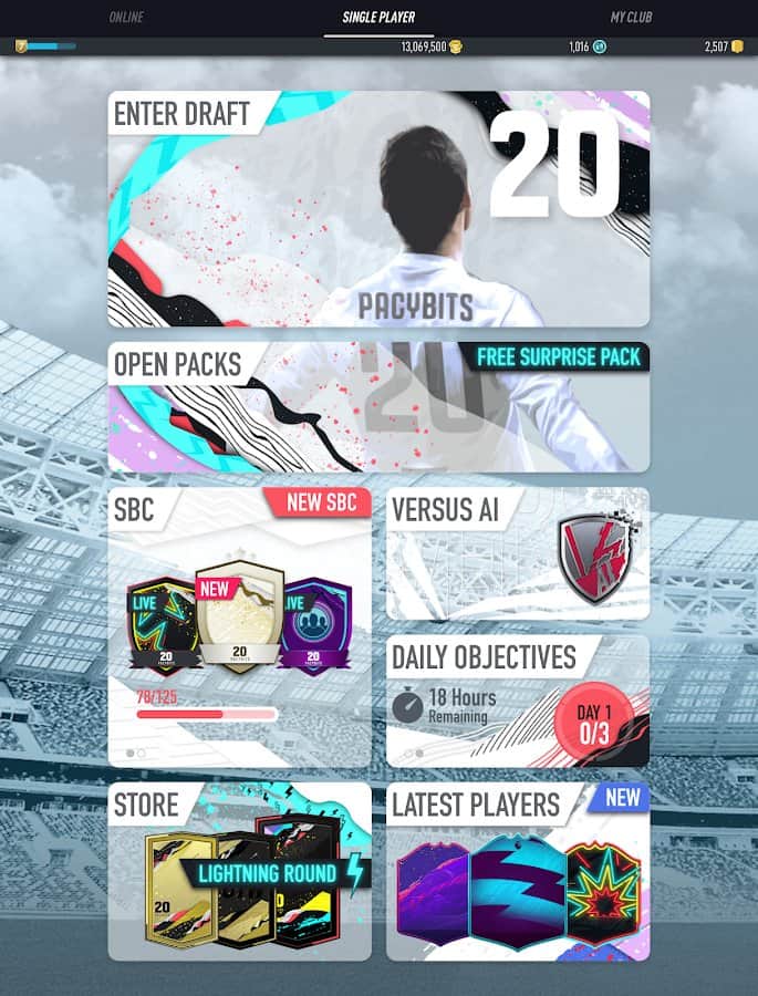 PACYBITS FUT 20 - спортивная игра на Android, в которой вы сможете создать свой собственный футбольный клуб. Станьте лучшим тренером и создайте величайший футбольный клуб в мире. Собирайте коллекции карт с футболистами и устраивайте импровизированные турниры. Выполняйте ежедневные и еженедельные задачи, а также задачи построения отряда, чтобы получить уникальные награды. Соберите новые карты и обменяйте их с другими игроками. Докажите, что вы лучший игрок и постройте лучший клуб.