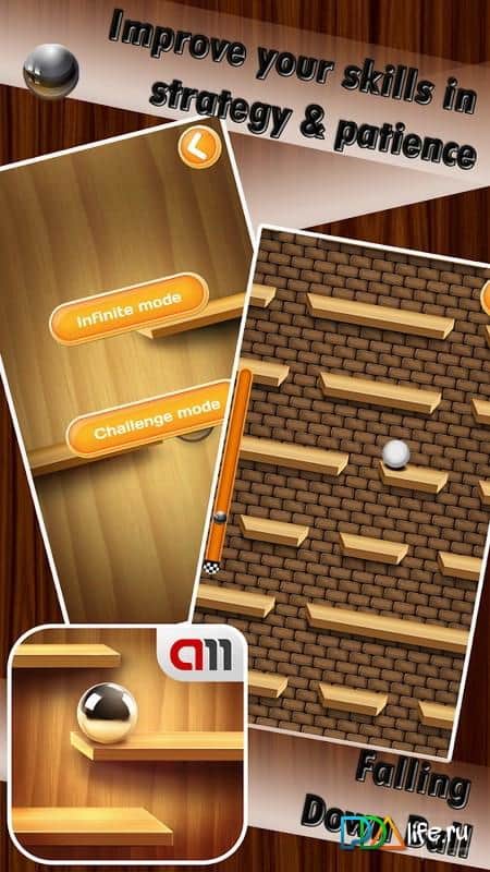 Падающий Шарик / Falling Down Ball - головоломка на андроид, которая понравиться и детям и взрослым. В этой игре вам предстоит с помощью наклонов вашего девайса катать шарик так, чтобы он попадал в отверстия и продолжал падение дальше. Выбирайте понравившийся дизайн из большого множества, а также устанавливайте подходящий режим и наслаждайтесь игрой в любое свободное время. Играйте и ставьте свои рекорды по времени прохождения игры.